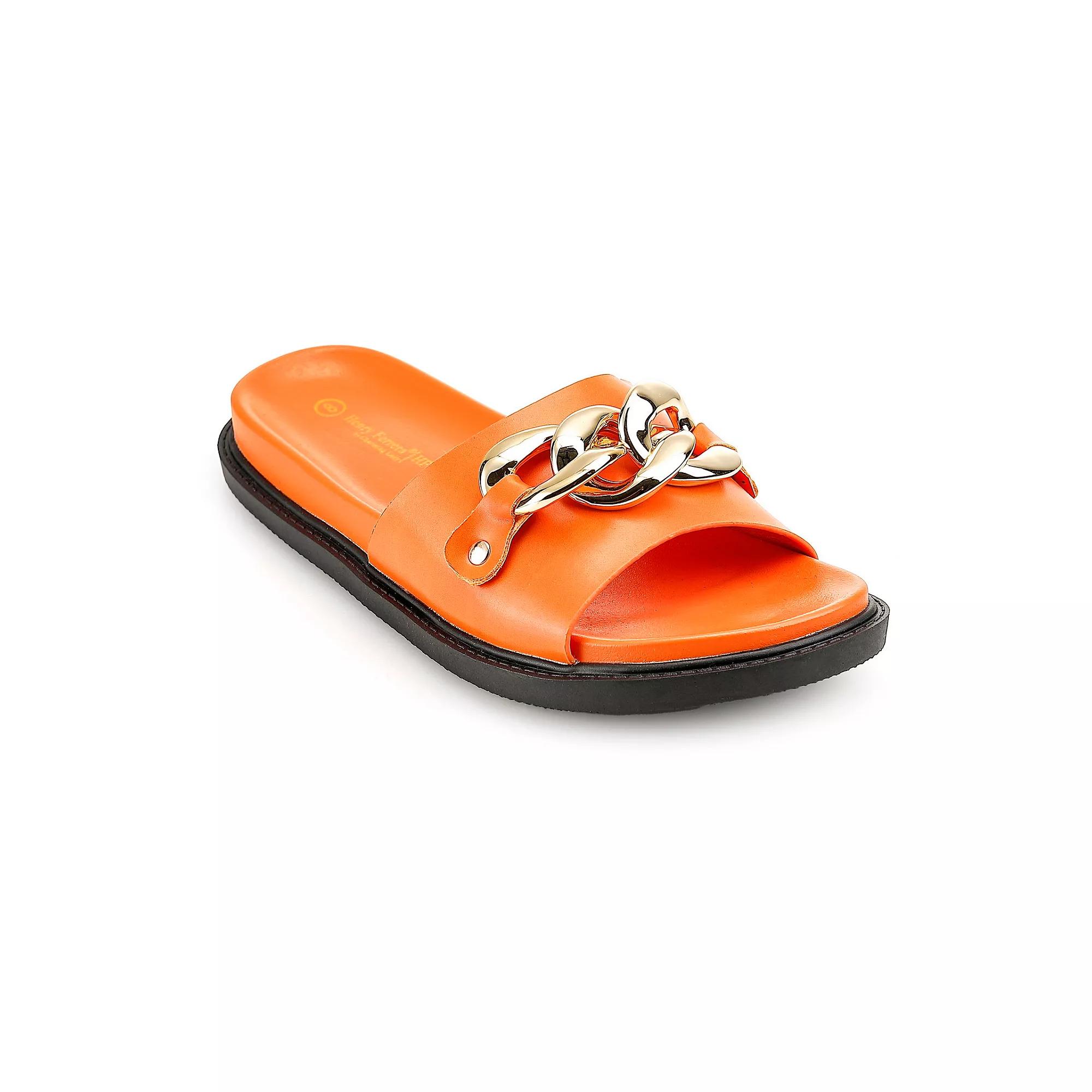 Feel comfy and classy in these Henry Ferrera Open Toe Women's Flat Sandals. Click this FOOTWEAR GUIDE to find the perfect fit and more! - https://www.kohls.com/feature/shoesizeguide.jsp. SANDAL FEATURES: Bulky buckle, Slip on for easy on off. SANDAL CONSTRUCTION: Faux leather upper, Manmade (PU) lining, TPR outsole. SANDAL DETAILS: Round toe, Polyurethane footbed, Flat sole, Slip-on,. WARNING: This product may contain chemicals known to the state of California to cause cancer or birth defects or other reproductive harm. Do not place in mouth or chew. For more information go to www.P65Warnings.ca.gov - https://www.p65warnings.ca.gov/. Size: 7. Color: Orange. Gender: female. Age Group: adult. Material: SYNTHETIC.