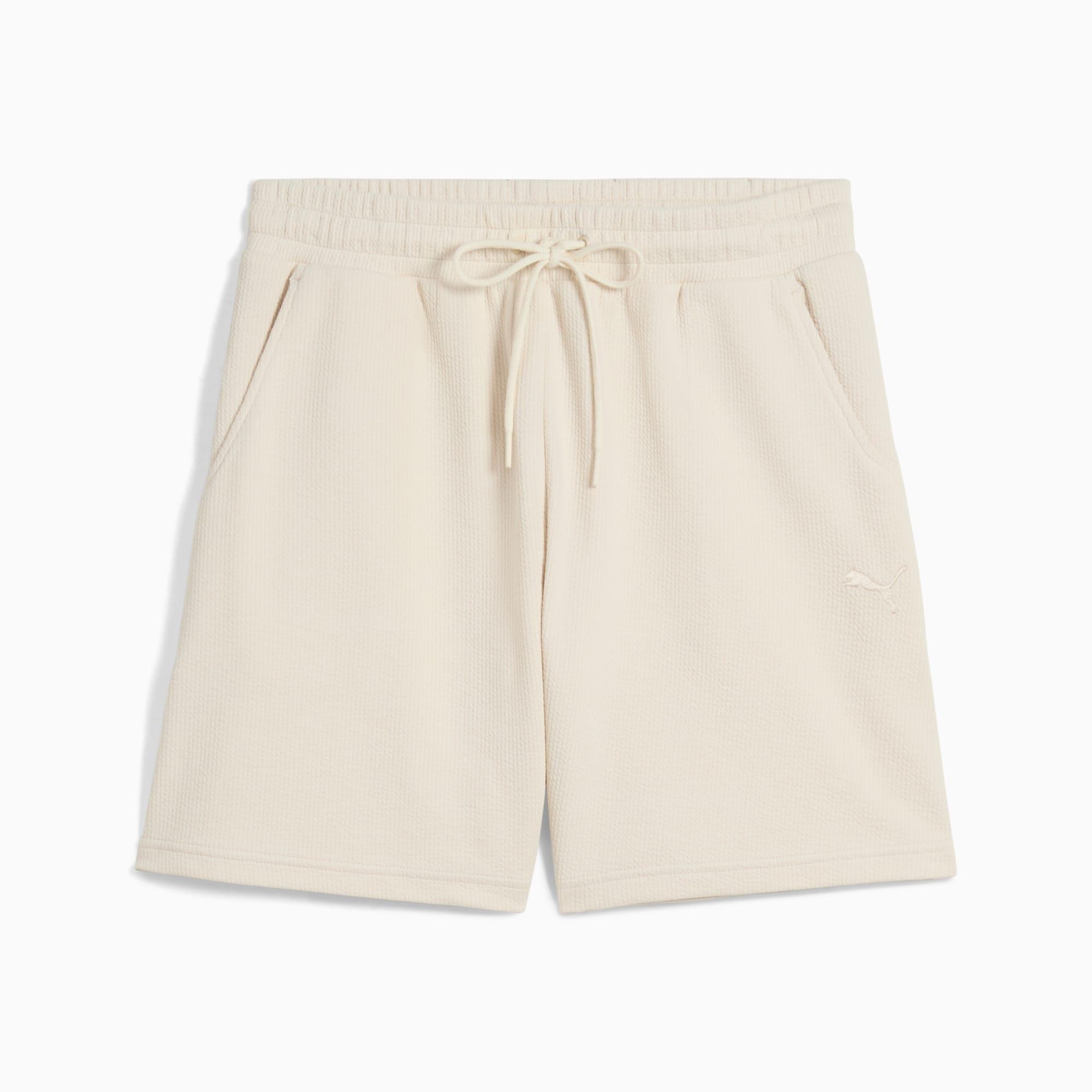 Step into effortless style with these high-waist shorts. Featuring an elasticated waistband with external drawcords for a perfect fit, alongside side seam, and back pockets for convenience. The embroidered PUMA Cat Logo adds that signature touch.Made with at least 30% recycled materialsRegular fitDouble face jacquard fabricShort lengthShell fabric waistbandSide seam and back pocketsPUMA branding details
