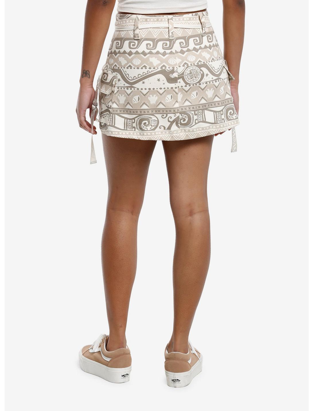 Put your wayfinding skills to the test in this Moana skirt! Perfect for your next adventure, this skirt features neutral-tone, geometric designs highlighting Maui, Pua, Kakamora and more! Comes with cargo pockets with strap and D-ring detailing. Plus, a string belt with beads on the ends.98% cotton; 2% spandexWash cold; dry lowImportedListed in junior sizesModel is 5'9''Model wears size Small