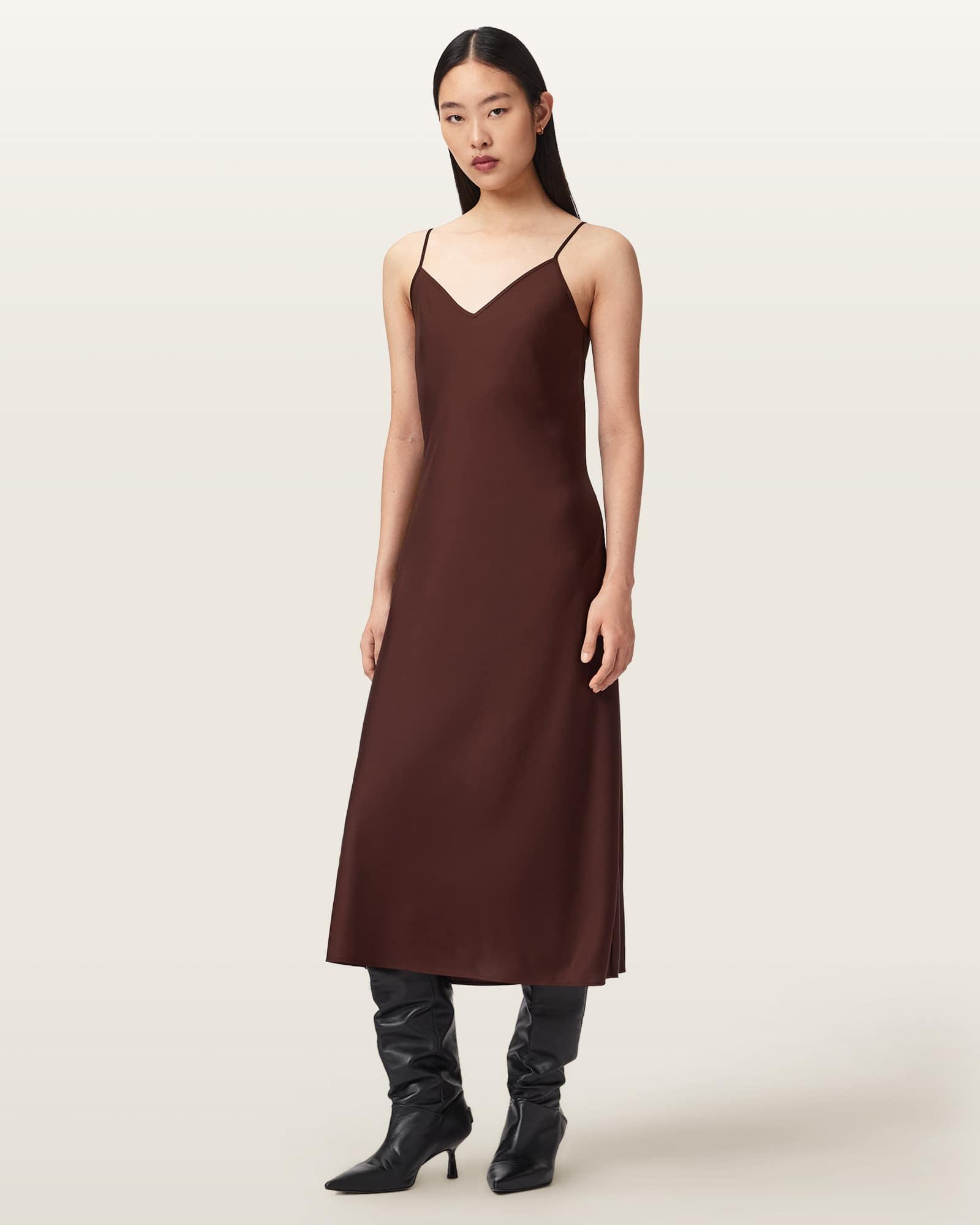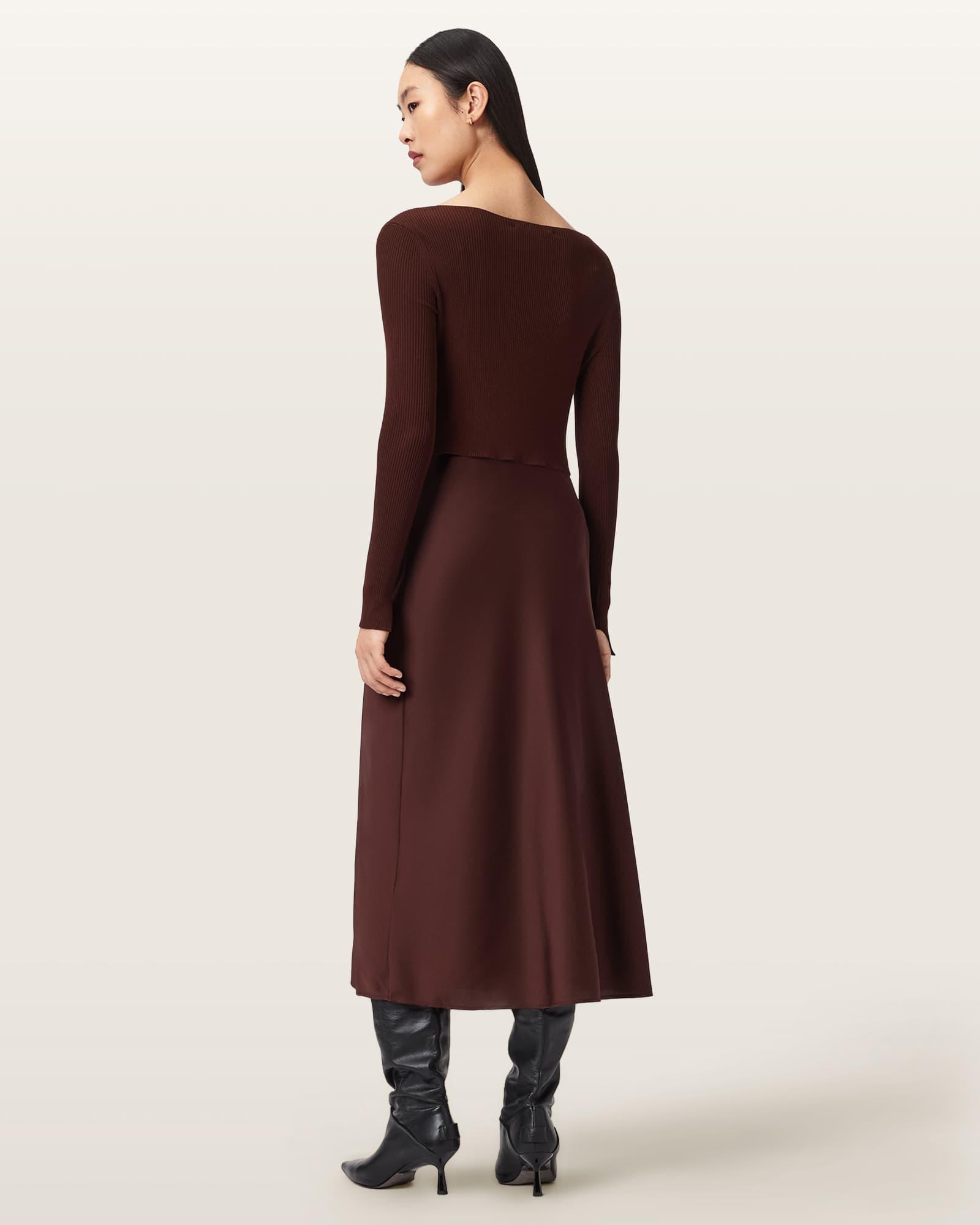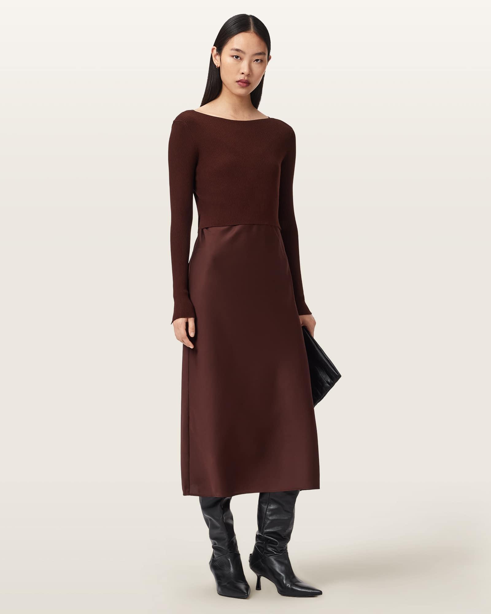 Hera 2-in-1 Midi Dress Bitter Brown | ALLSAINTS US