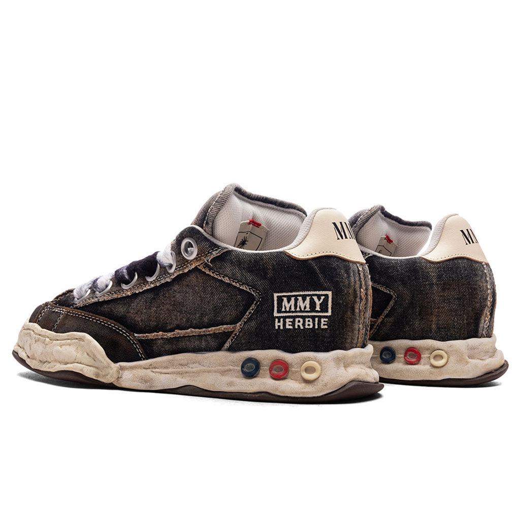 Unleash your edge with the Herbie Puffer Low OG Sole from Maison Mihara Yasuhiro. Crafted from premium materials, the sneakers feature a distinctive puffer-style upper for visual aesthetics and extra comfort. Tonal details and worn-in elements add to its raw, authentic vibe. Mihara's signature OG sole—originally shaped in clay by the designer—completes the shoe with its warped, asymmetrical shape. Puffer-style upper Faded wash Distressed effect Round toe Oversized tongue Chunky laces Logo patch on the tongue, debossed logo on the side Asymmetrical rubber sole All sizes are listed in European Men’s sizing unless stated otherwise Style No: A13FW720-BLK