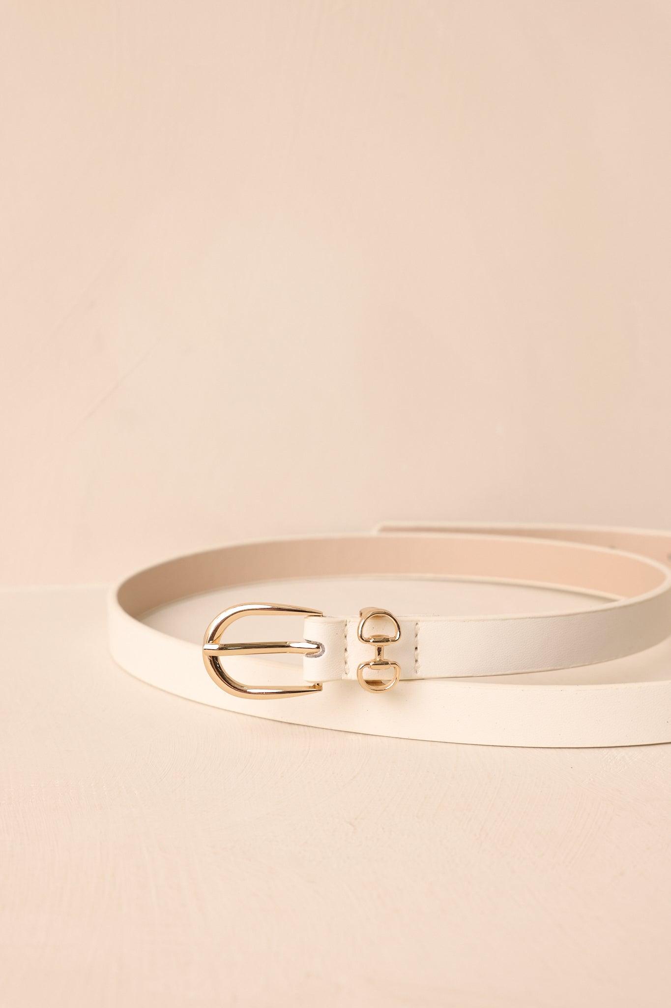 Here All Along Ivory Faux Leather Horseshoe Buckle Belt is the kind of piece you didn’t know you needed until it completed your look. It’s simple, stylish, and always right where it belongs. This white faux leather belt features a polished gold-tone horseshoe buckle with equestrian-inspired double ring detailing, adjustable punched holes, and matching belt keepers for a clean, secure fit. This Belt Measures: 42" 100% Polyurethane Manufactured in China