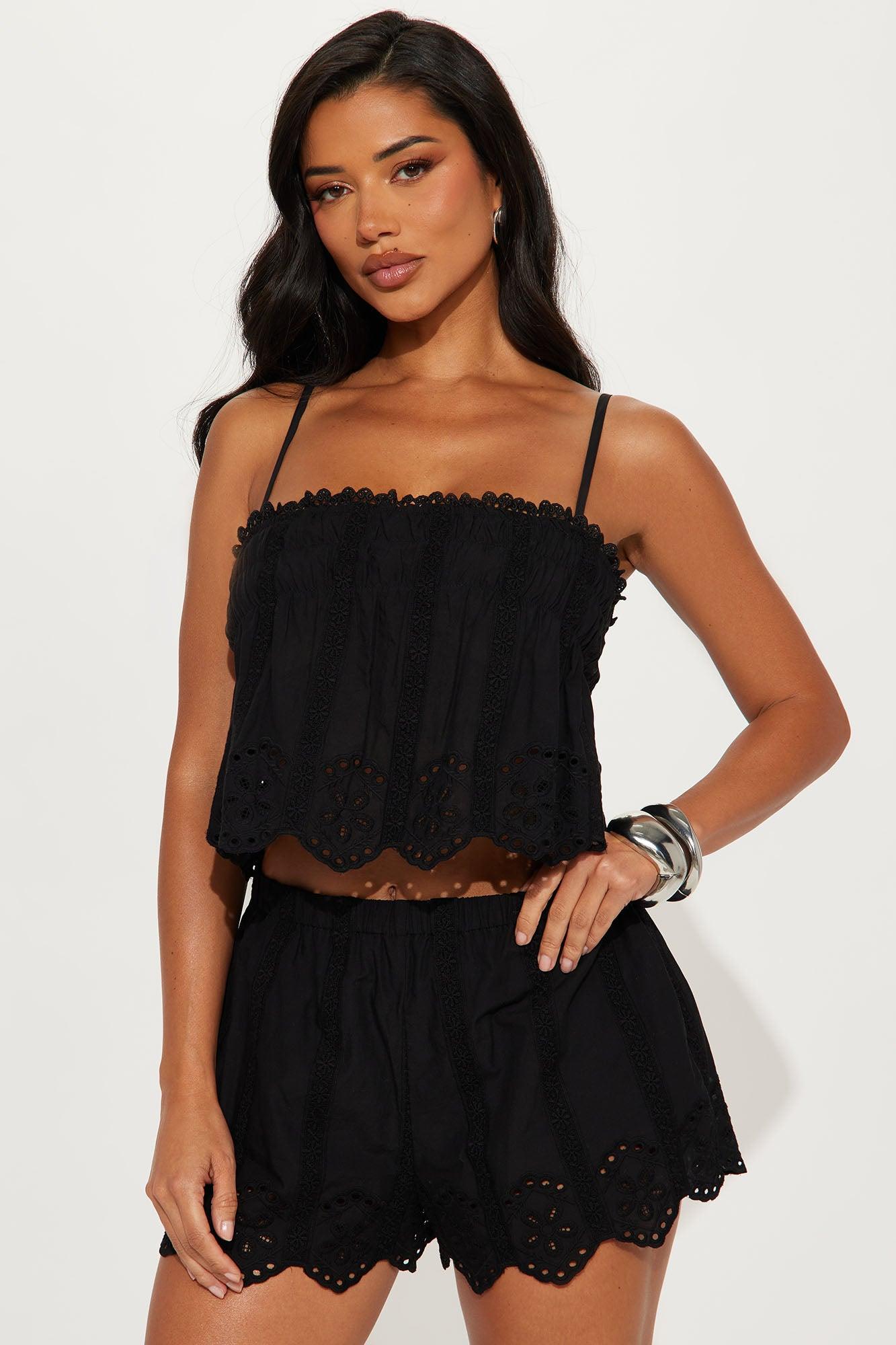 Hazel Crochet Short Set - Black