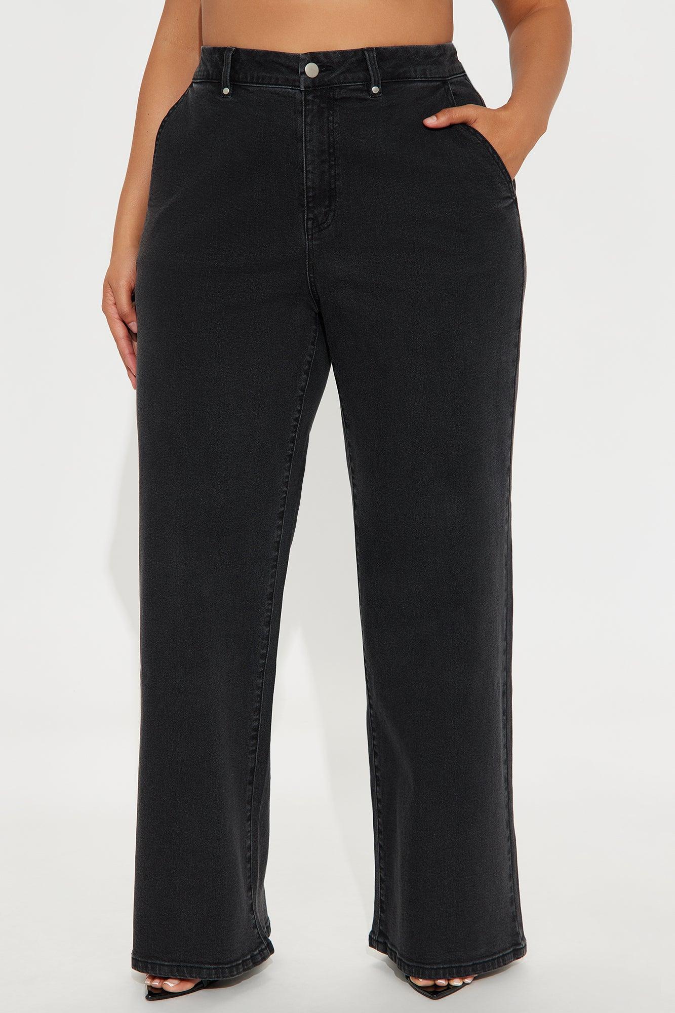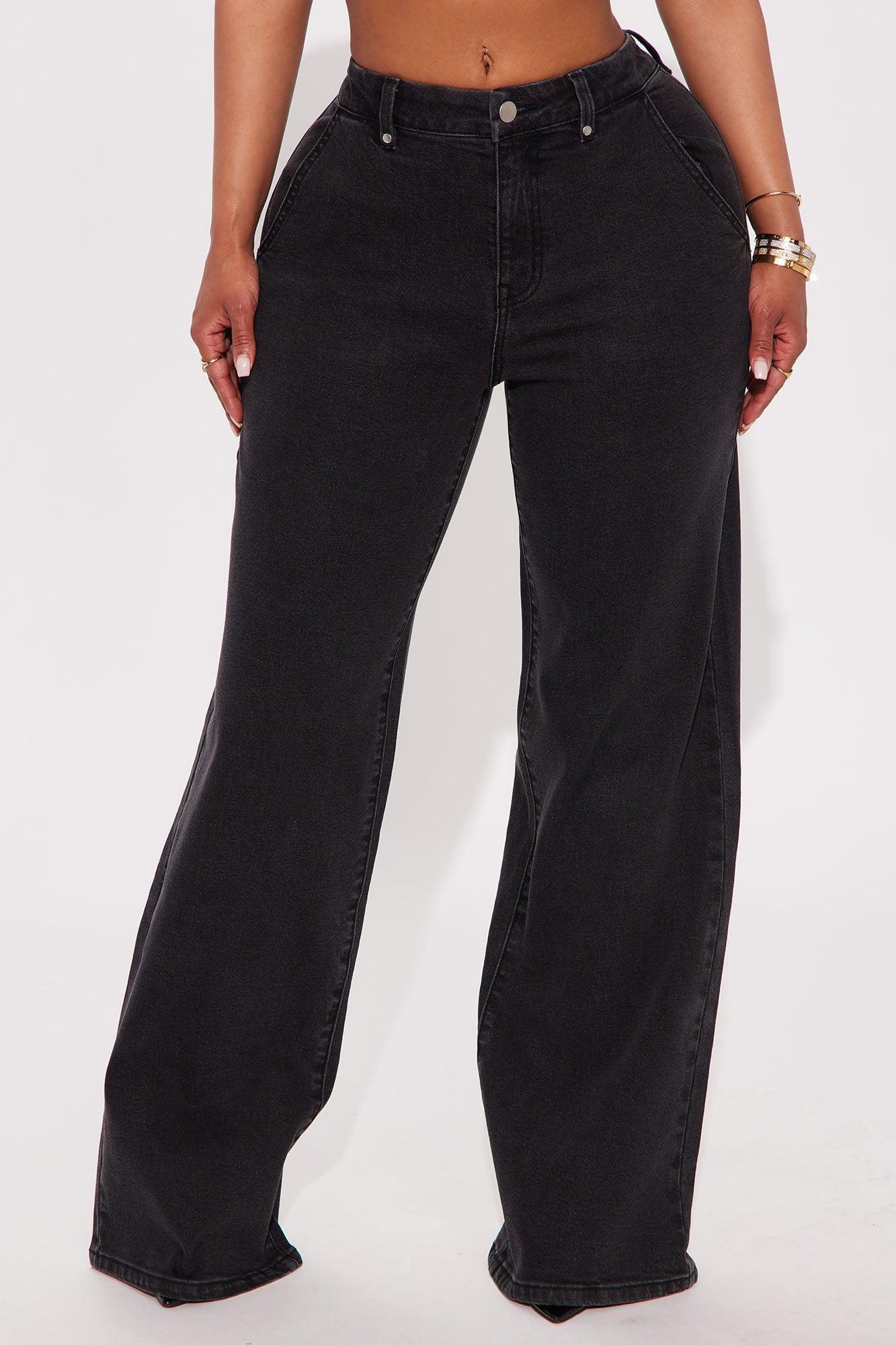 Here We Go Again Wide Leg Jeans - Black Wash Female