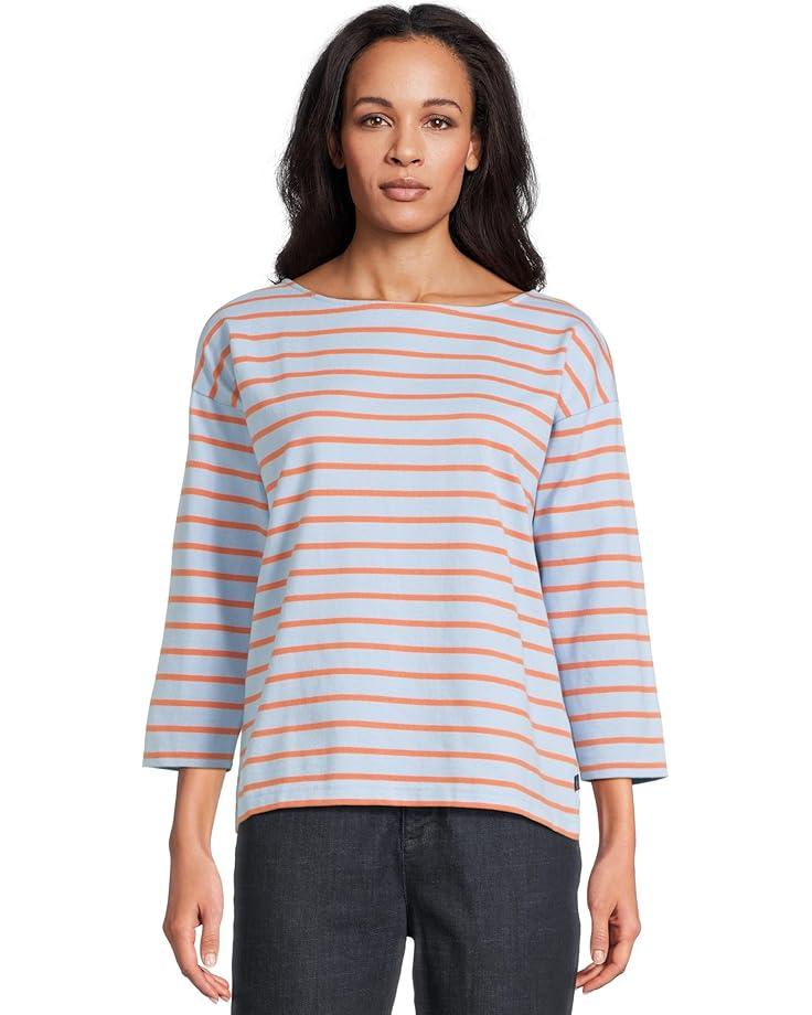 Heritage Mariner Top Split-Neck Polo Three-Quarter-Sleeve Stripe