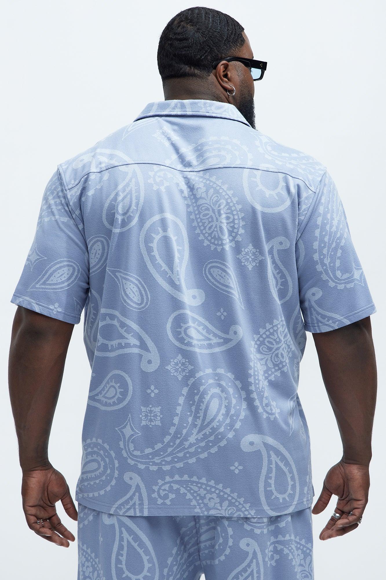 Heritage Paisley Short Sleeve Button Up - Light Blue