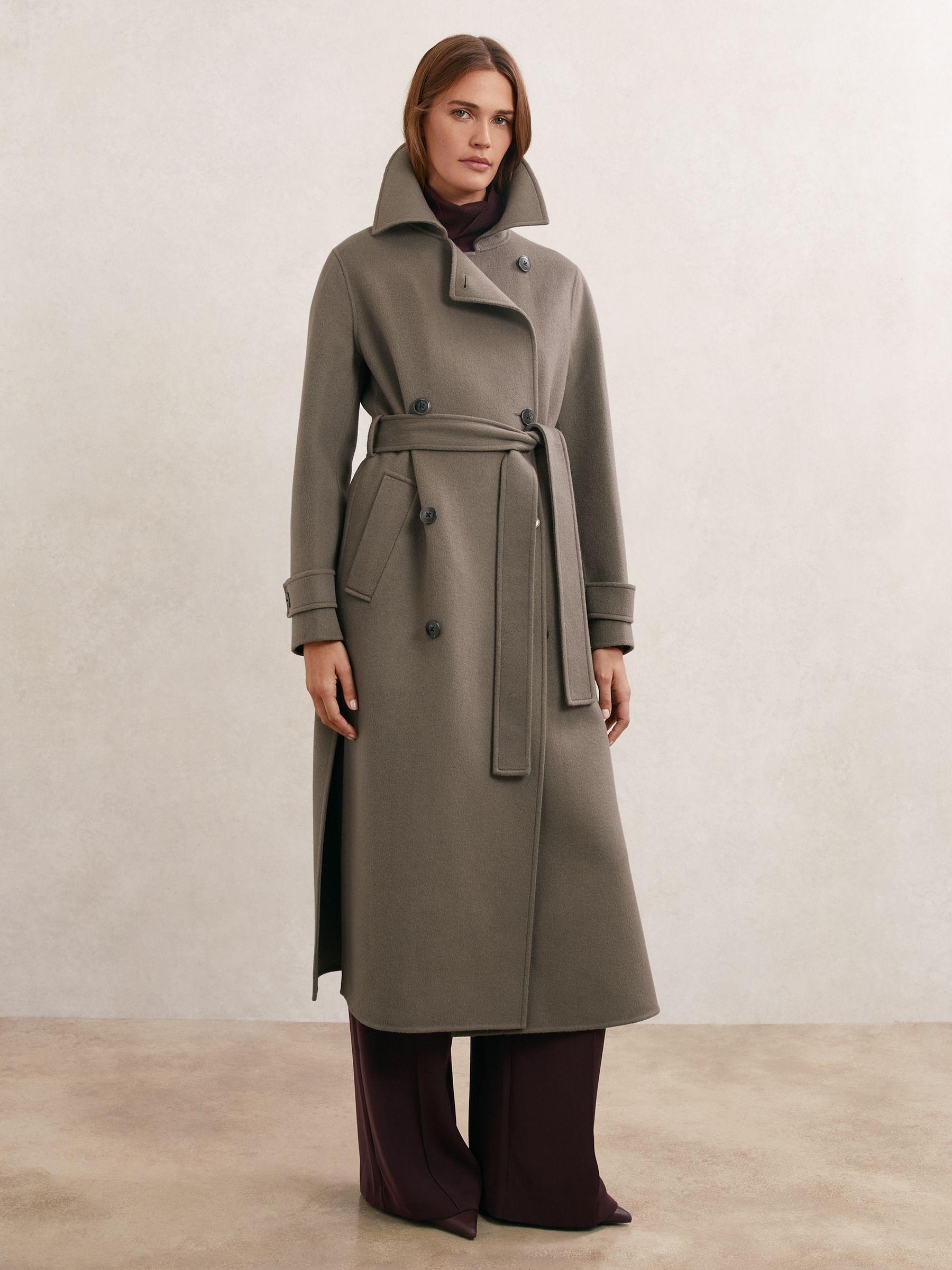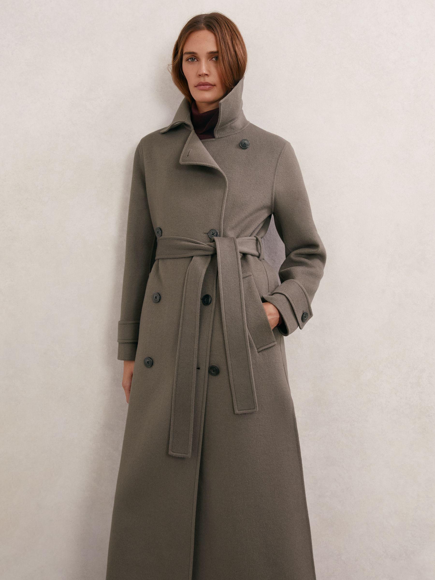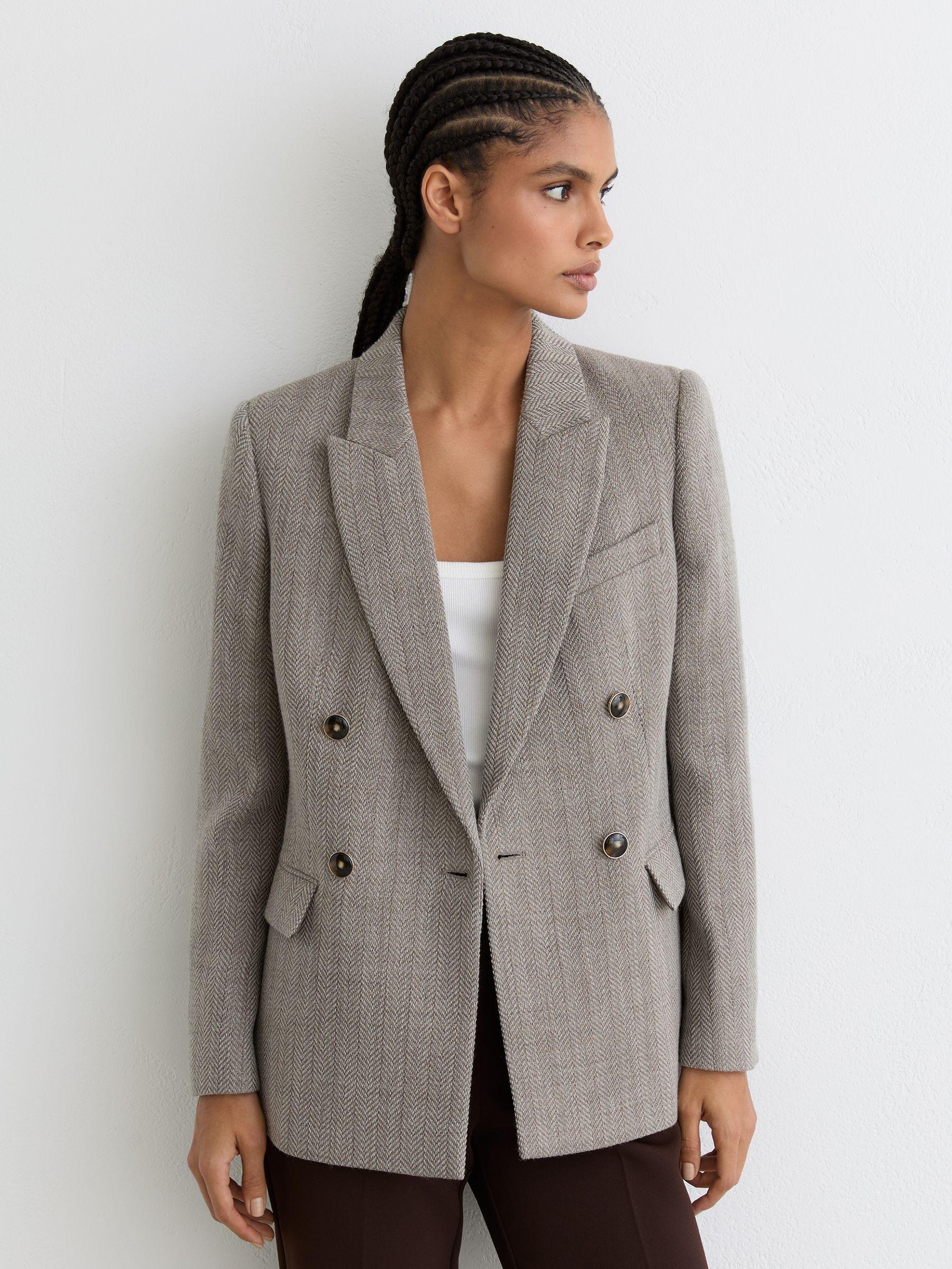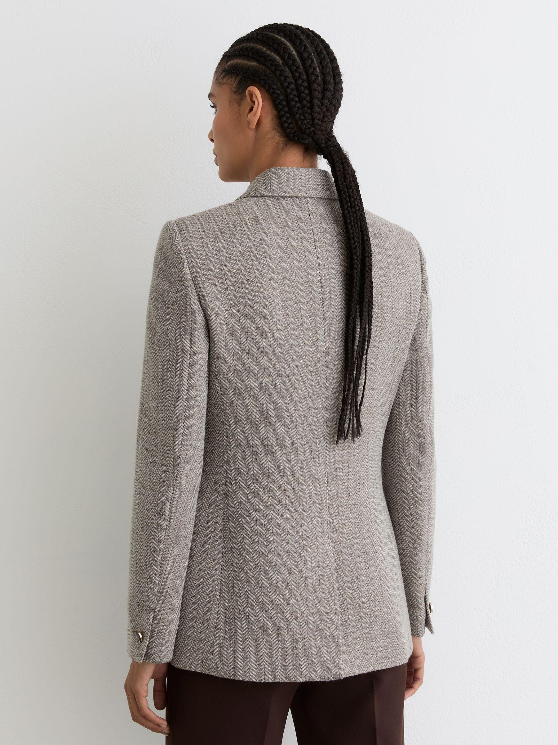 Herringbone Double-Breasted Blazer Wool-Cotton in Grey