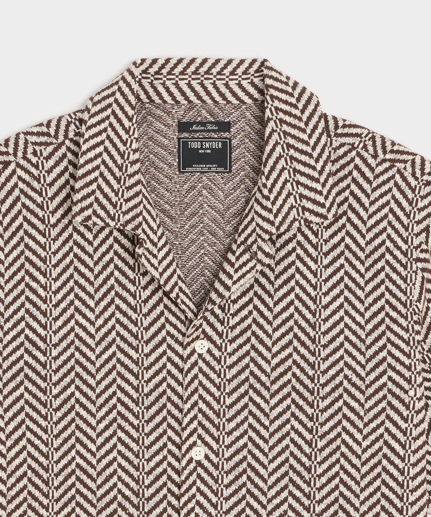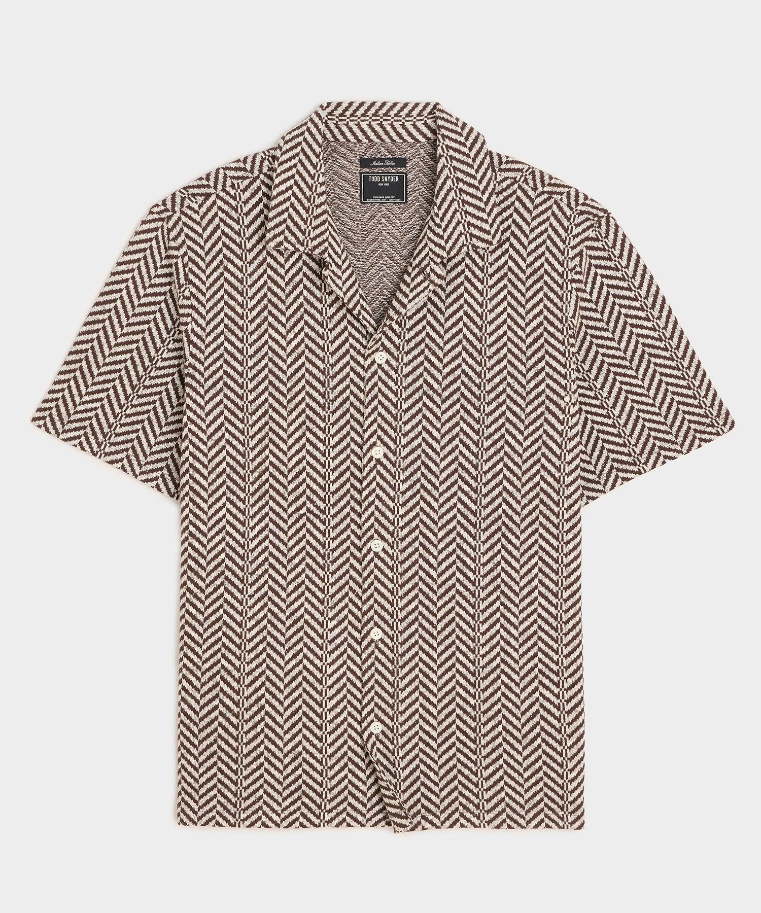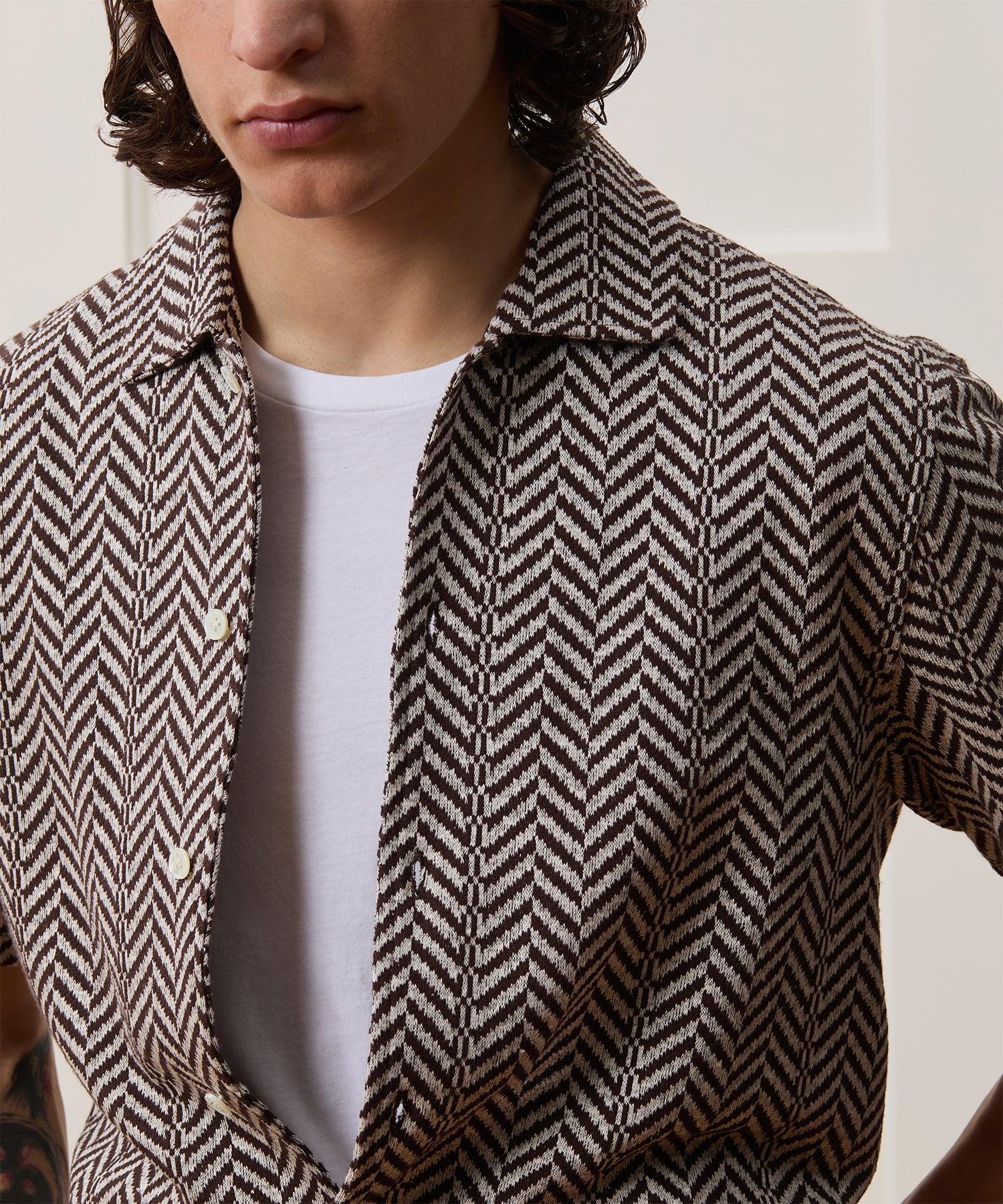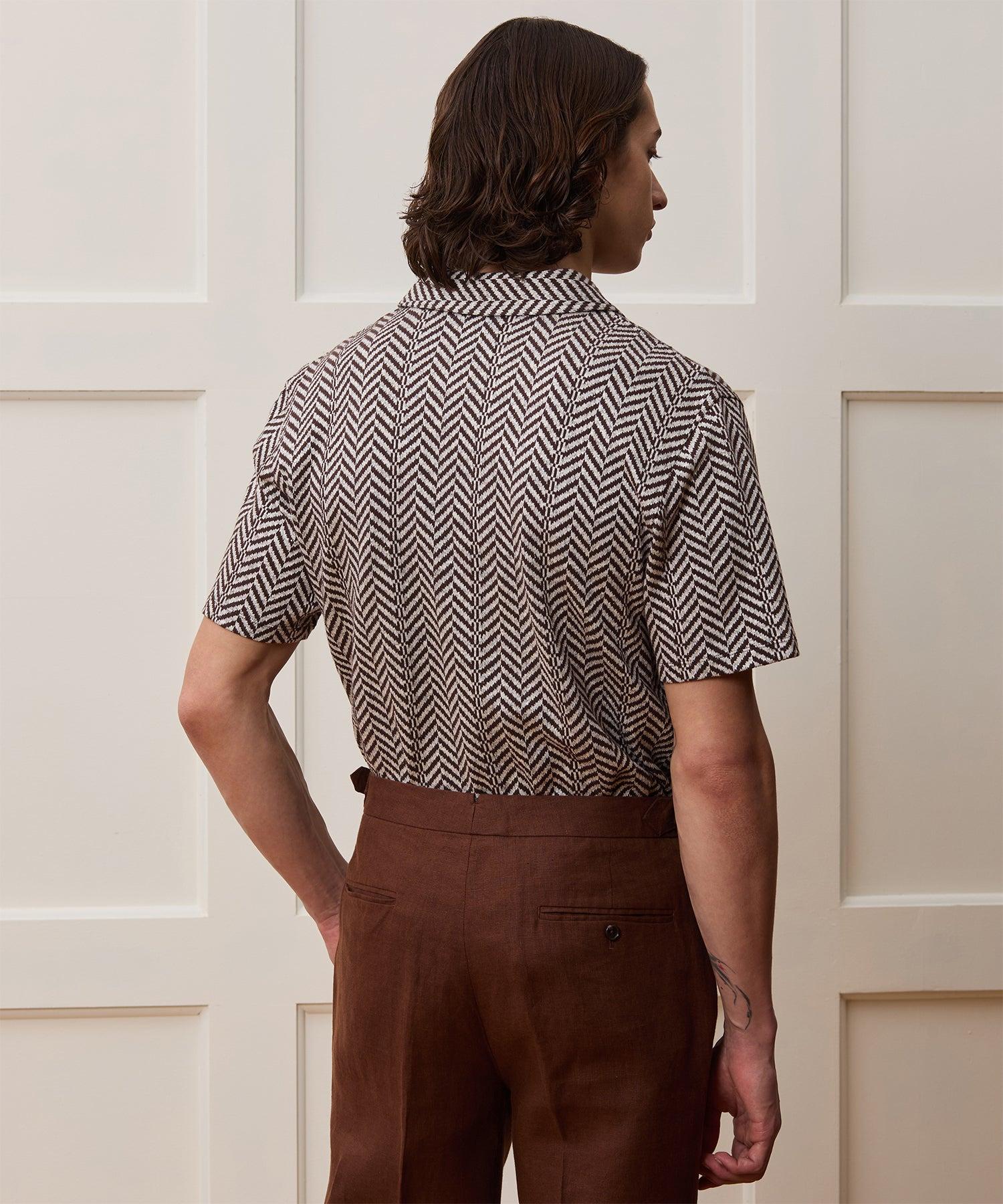 This Knit Shirt combines the feel and comfort of a tee with the stylish good looks of a woven shirt. It’s crafted from a lightweight linen and cotton blend with a little bit of stretch to it and a jacquard herringbone pattern — “jacquard” refers to a weaving technique where intricate patterns are woven directly into the fabric. With a straight, classic fit and clean detailing, it’s a handsome shirt all on its own or worn open, layered over a tee or tank. 48% Linen, 42% Cotton, 10% Polyester Slim Fit Made in Italy Dry clean only. Cool iron if needed. Style KN4290591