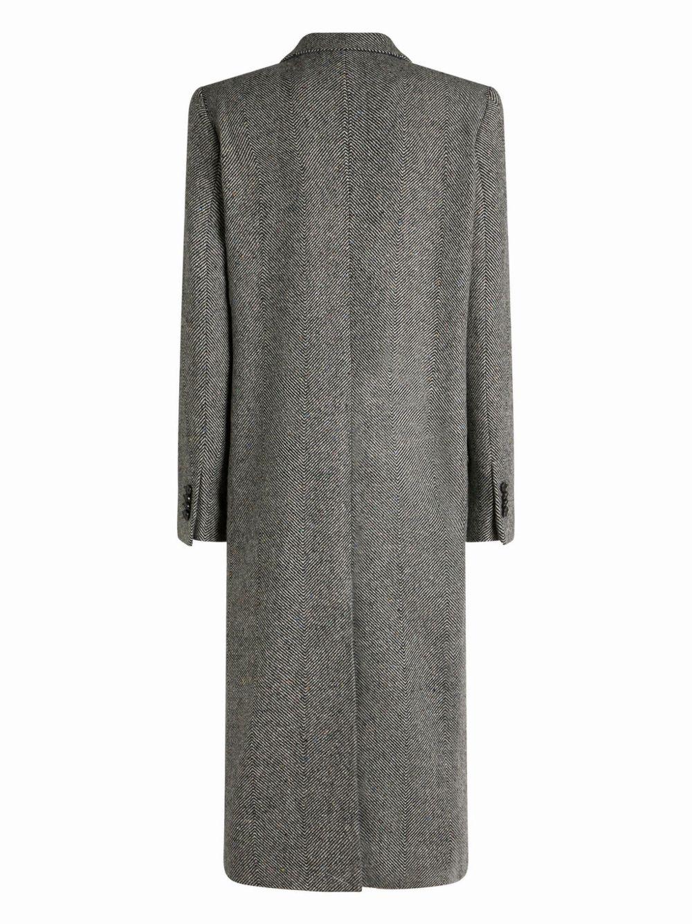 ETRO herringbone-pattern double-breasted coat | Black | black/white | wool blend | herringbone pattern | peak lapels | double-breasted button fastening | long sleeves | buttoned cuffs | two front flap pockets | straight hem | central rear vent | full lining | Viscose/Acetate/Wool/Nylon | Double Breasted & Peacoats | Coats | Clothing | Women