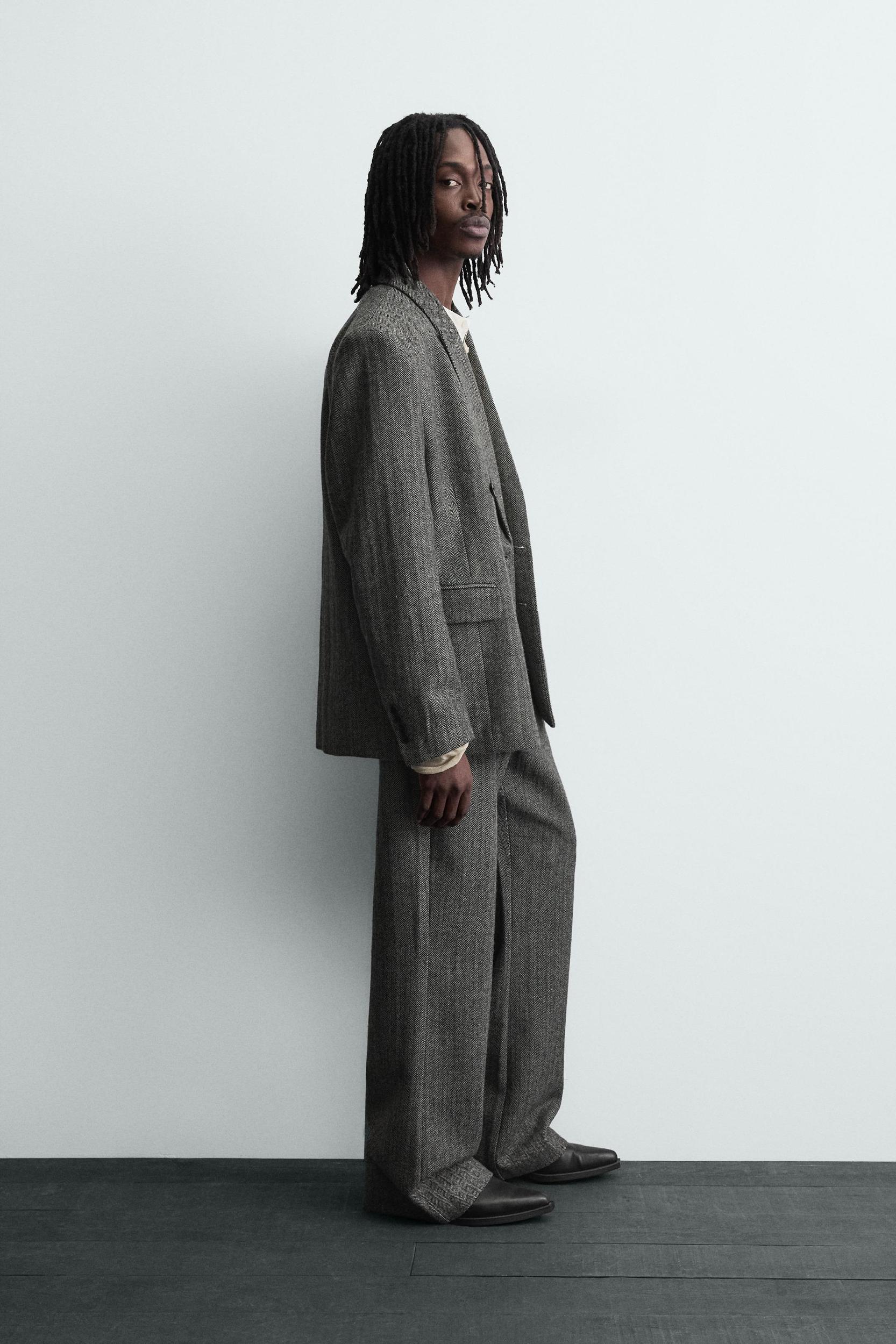 HERRINGBONE WOOL BLEND SUIT PANTS