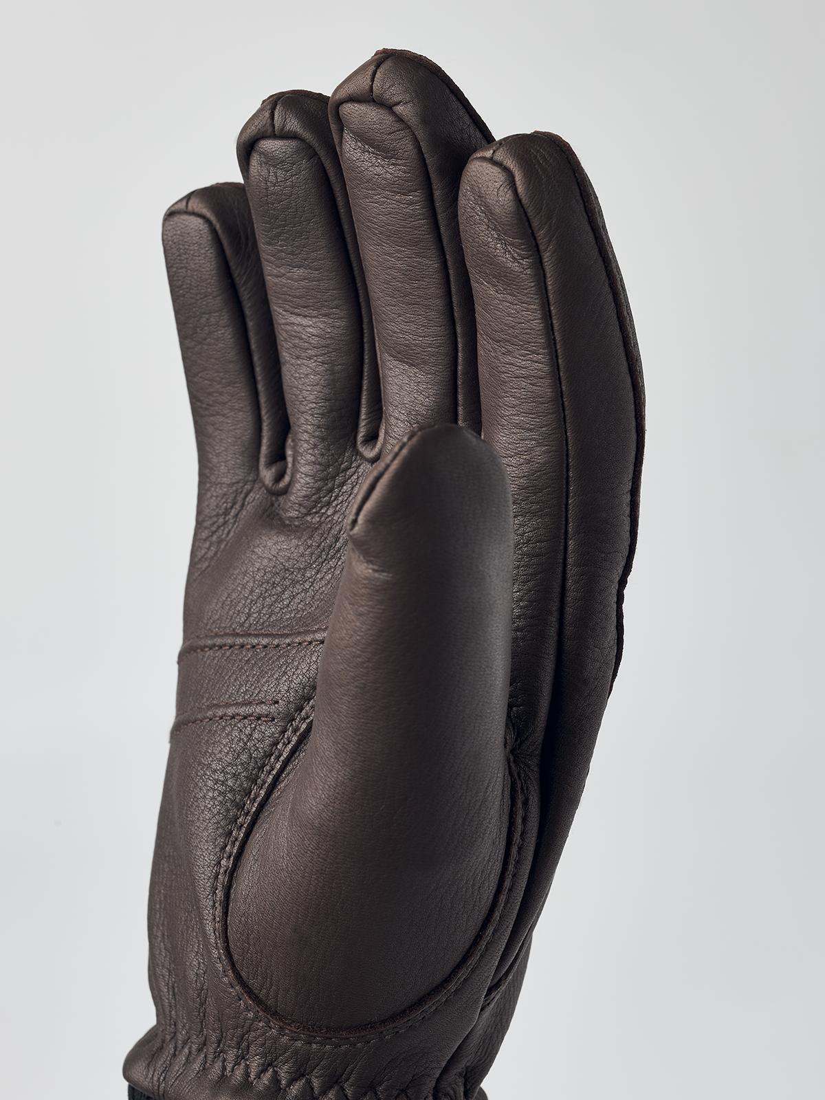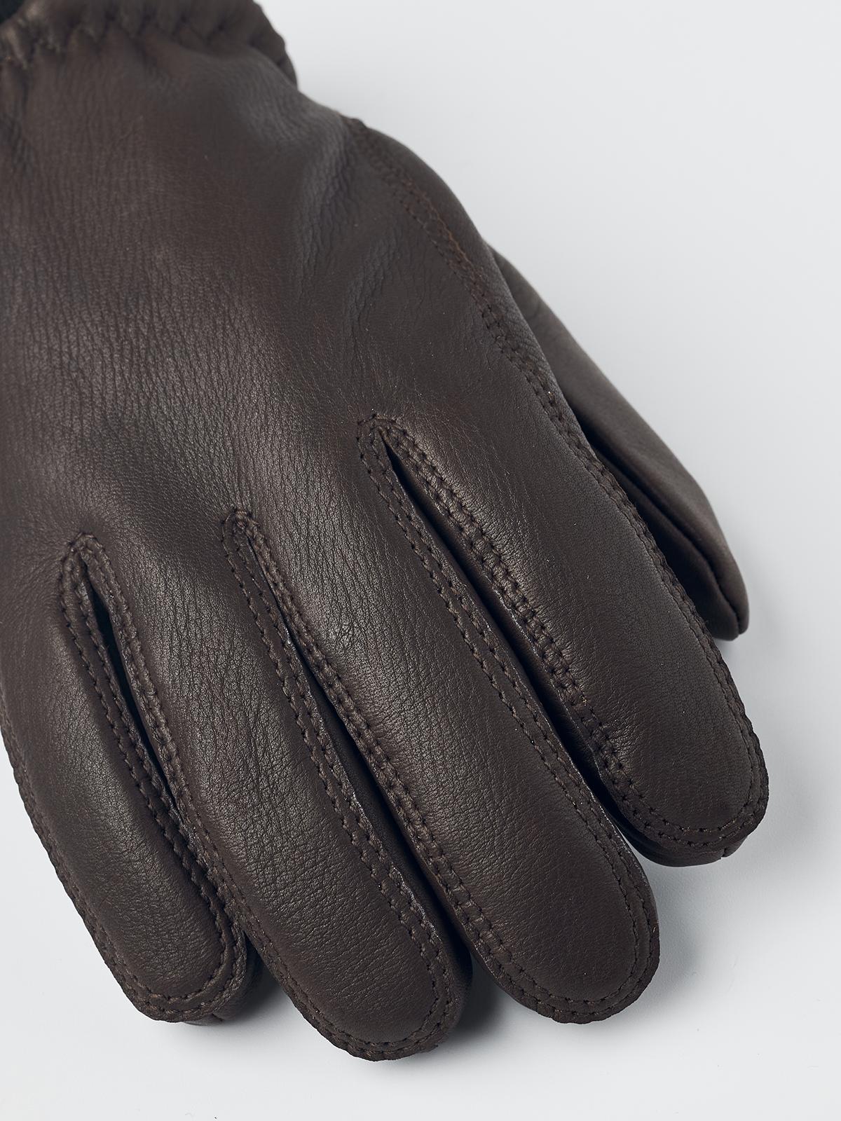 Weekend walks in the forest or everyday journeys – wherever you’re headed, this winter glove will keep your hands warm and comfortable. It is sewn in quality deerskin, a supple leather that keeps the warmth in and has a rustic, natural look. The cut is pre-curved, with an elasticated wrist and a ribbed wool blend cuff. A half piqué seam using strong thread adds a subtle note of style. Quality stitching and materials produce a glove that will last you a long time, becoming softer and more comfortable the more you use it. ----Details---- Imported Men’s lined winter glove. Soft, supple, insulating deerskin. Fleece lining and polyester insulation (Primaloft Gold). Pre-curved fit. Half piqué seam along the top of the fingers Elastic seam around the wrist. Ribbed cuff, 80% wool, 20% polyamide. Hestra logo stamped on side. ----Materials---- Deerskin. A supple and isolating leather with a beautiful grain texture. Durable lining with a soft feeling. The brushed surface binds more air which provides a better insulation. 100% polyester. ----Size & Fit---- ----Care---- Hand wash only