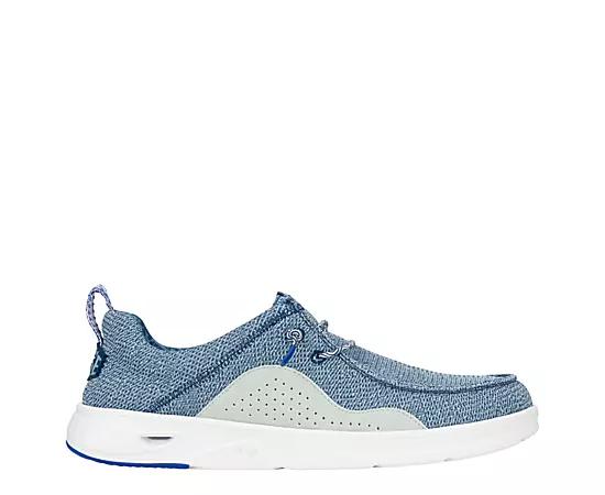 HEYDUDE Wally Hey2O Mens Slip-On Sneaker - Blue Hit the beach or boardwalk in style with the Wally Hey2O Active. Boardshort-inspired upper , drainage holes in the midsole, and an easy-on design lets you splash into action. From beach bumming to catching waves, these kicks are your aquatic companions. Mesh upper Slip-On w/ elastic laces Padded collar /heel Removable foam insole Traction outsole