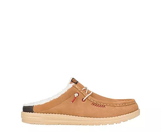 HEYDUDE Wally Slip Warmth Men's Slip-On Comfort follows the HEYDUDE Wally Slip Warmth Slip-On. With a suede upper featuring a faux fur lining for a warm fit, this easygoing Shoe is travel ready. The removable foam insole cushions your moves, while the lightweight, flexible outsole sets you free to explore unfettered. Suede upper Slip-On w/ elastic laces Plush lining Removable foam insole Traction outsole