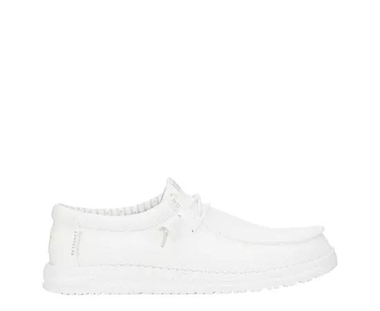 HEYDUDE Wally Knit Men's Slip-On Sneaker - WhiteRelax into your passion with the HEYDUDE Wally Stretch Sox Slip-On Sneaker. With a textile upper featuring a wide, flexible fit and breathability, these monochrome Shoeshave elastic laces for a secure fit. The removable insole offers ergonomic comfort and cushioning, while the lightweight outsole sets you free to explore unfettered. Textile upper Slip-On w/ elastic lacesTravel readyRemovable foam insoleTraction outsole