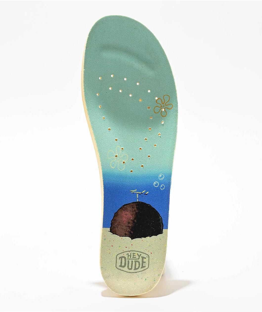 Absorbent, yellow and porous with a breathable mesh upper, SpongeBob Squarepants joins up with HEYDUDE to proudly introduce the Wally Funk shoes with printed facial expressions from the famous cartoon character on each toebox. Topped with cushioned a