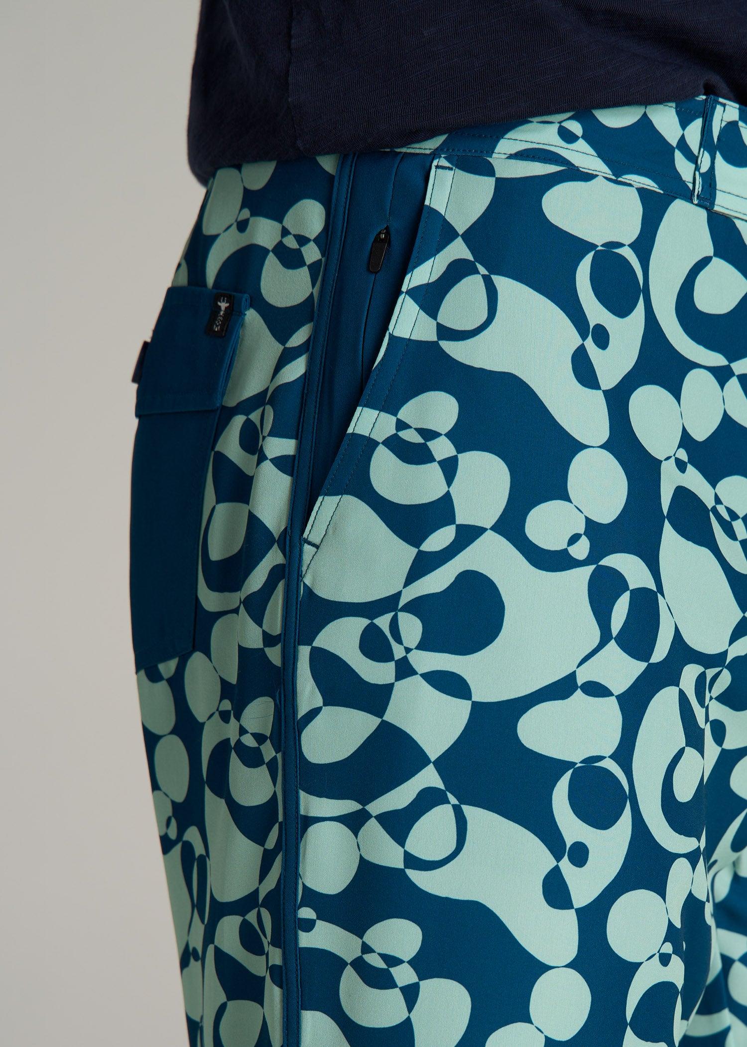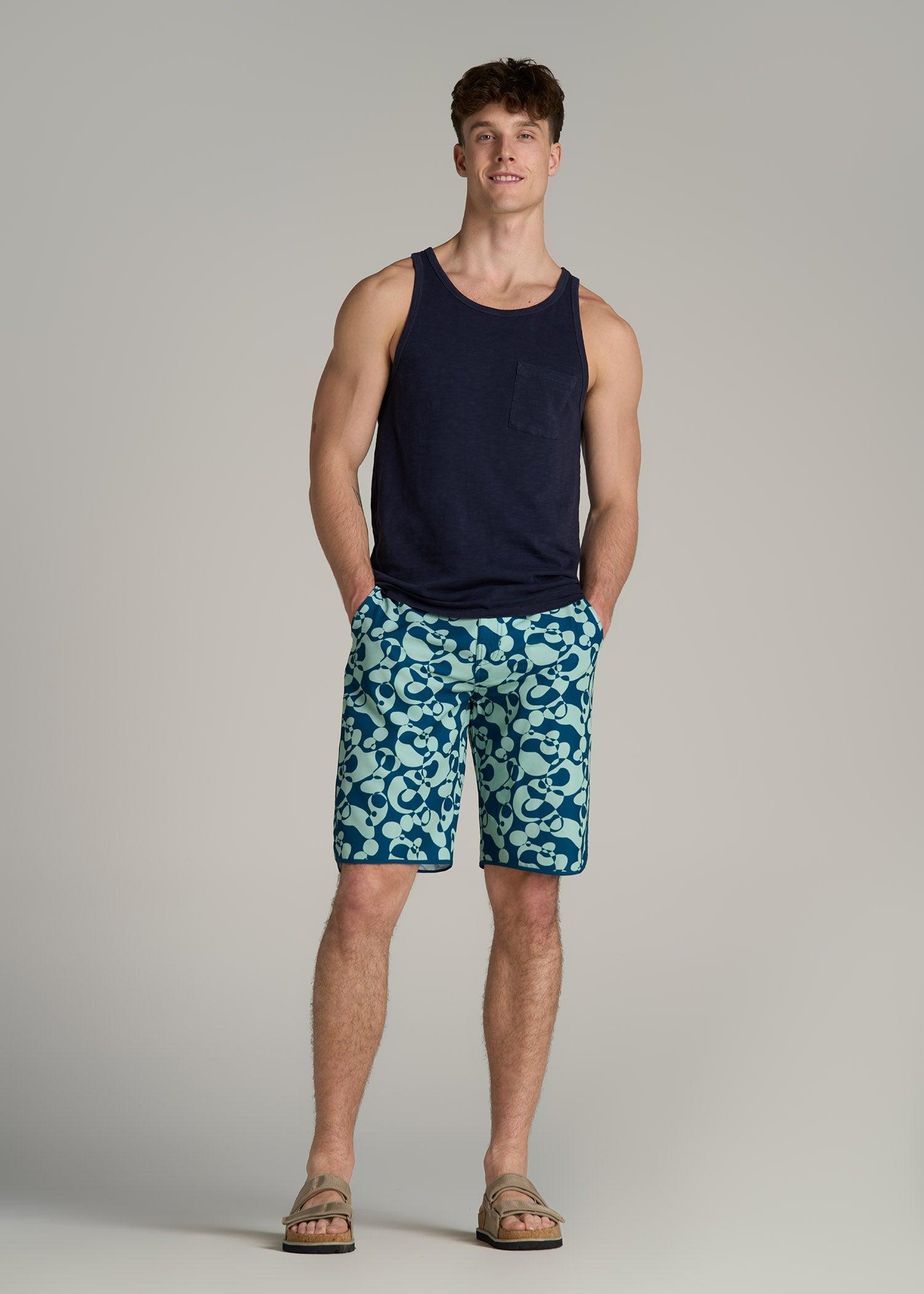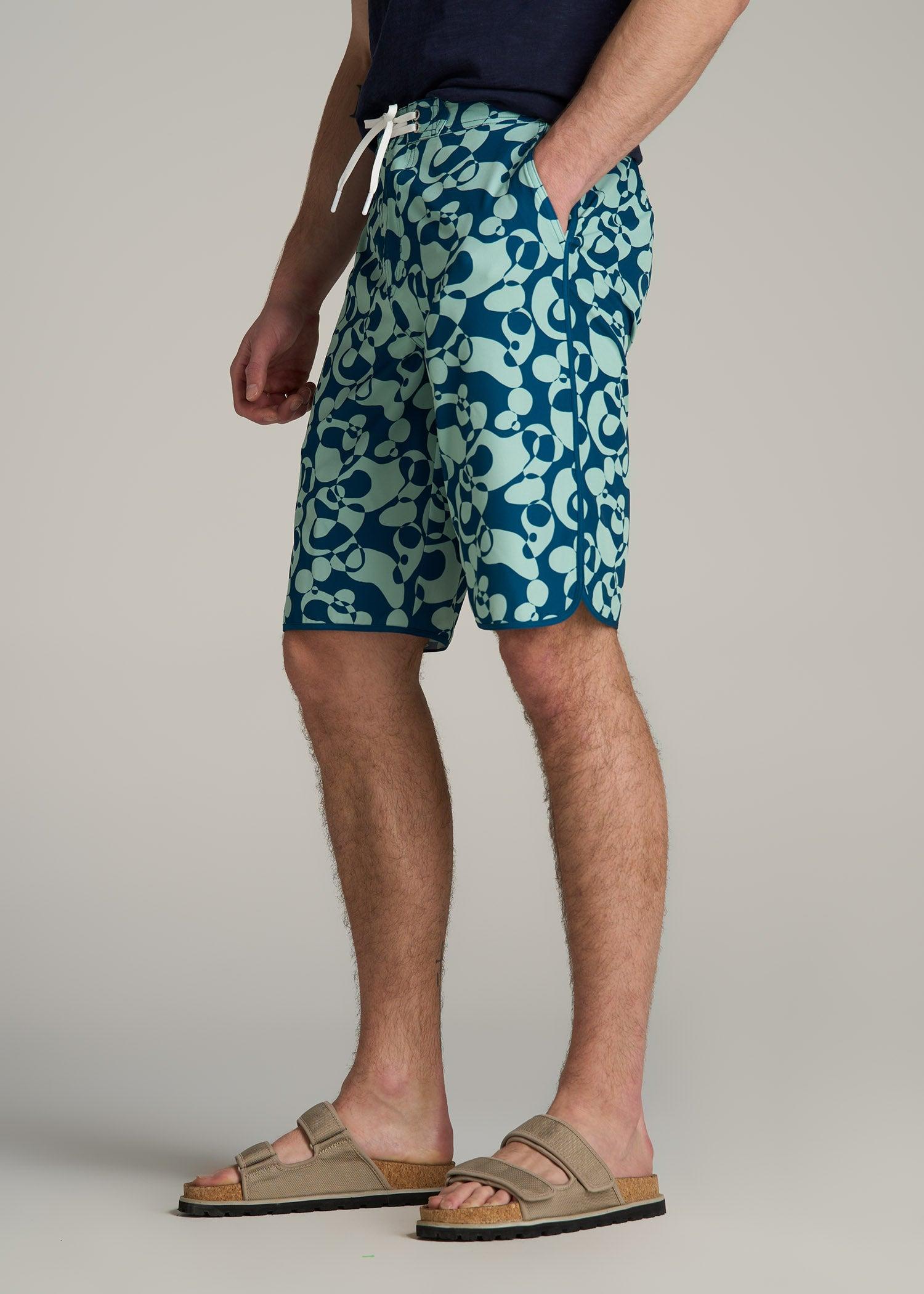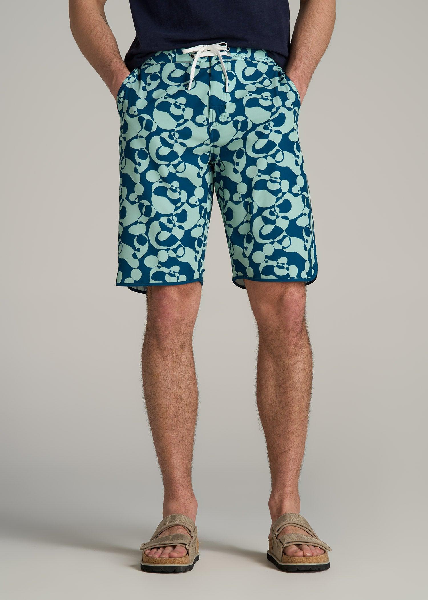 Hi-Tide Scallop Board Shorts for Tall Men in Mint Abstract Male