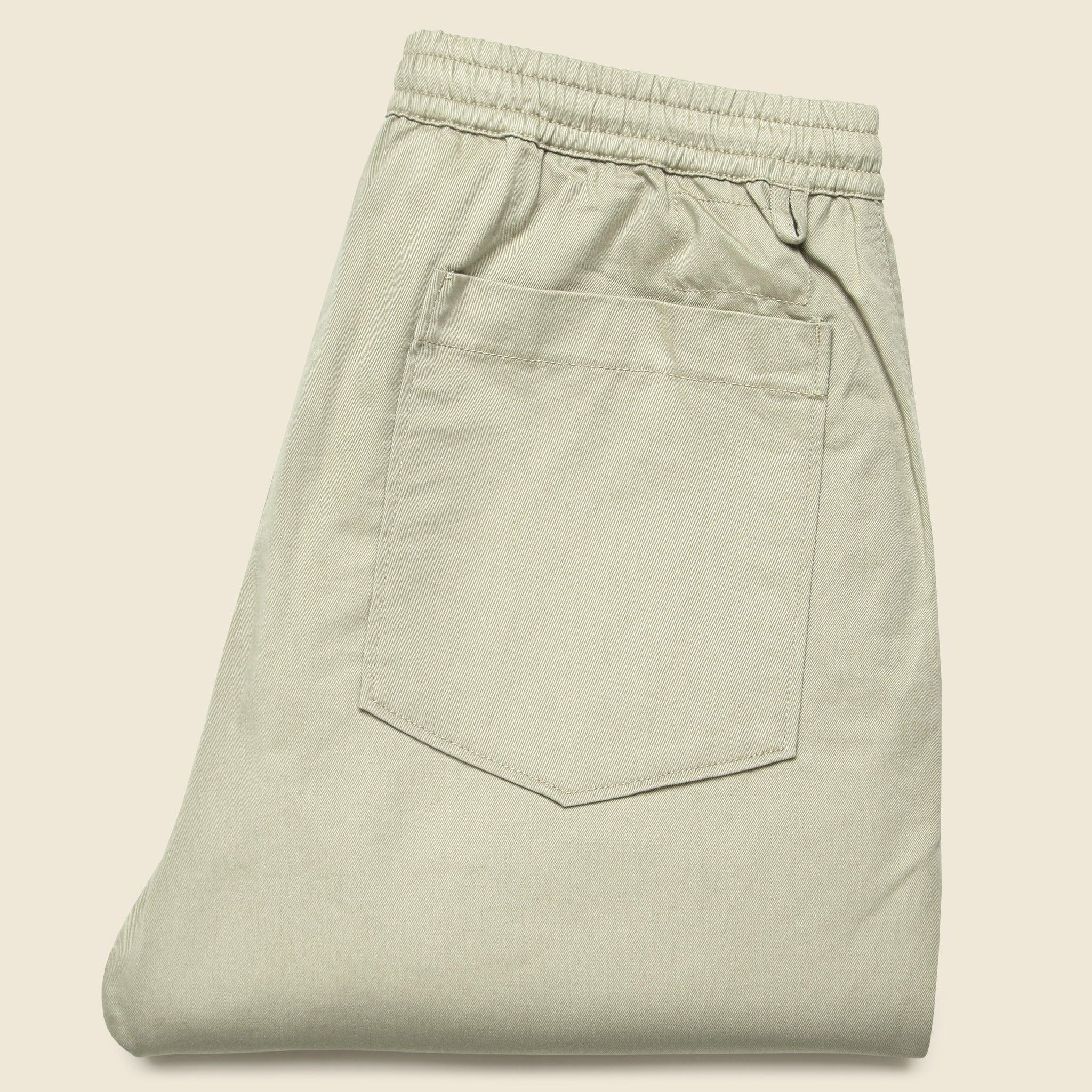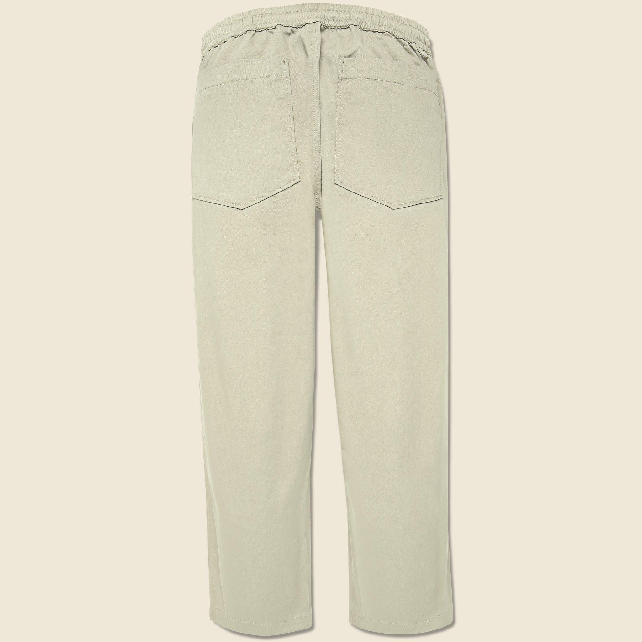 These Hi-Water Trousers from Universal Works are made from a midweight, cotton twill that breaks in wonderfully through wash and wear to make them an easy go-to throughout the year. They’re cut with a casual, loose fit and a cropped inseam to let those ankles breathe a bit during the warmer months ahead. Finished with a comfortable drawstring waistband and plenty of pockets to bring essentials wherever you go. Midweight cotton twill Elasticated waistband with drawstring Two slant waist pockets Two back pockets 25” cropped inseam Casual, loose fit that runs true to size We recommend taking your normal size Materials: 100% cotton The following measurements are for size Medium: Waist: 30” | Inseam: 25” | Thigh: 12” | Leg opening: 16” | Rise: 13 ½”