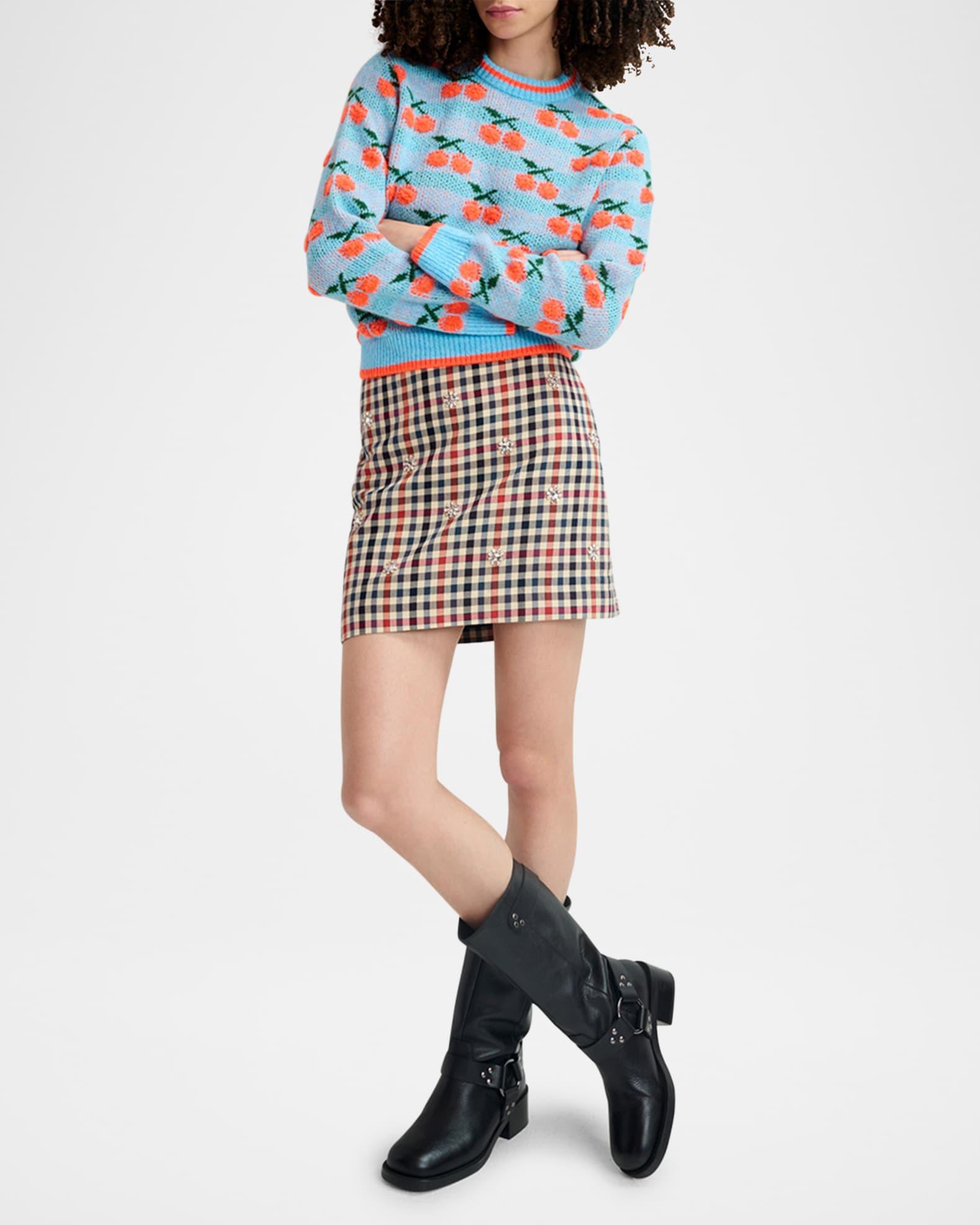 Hiamond Checkered Rhinestone Mini Skirt