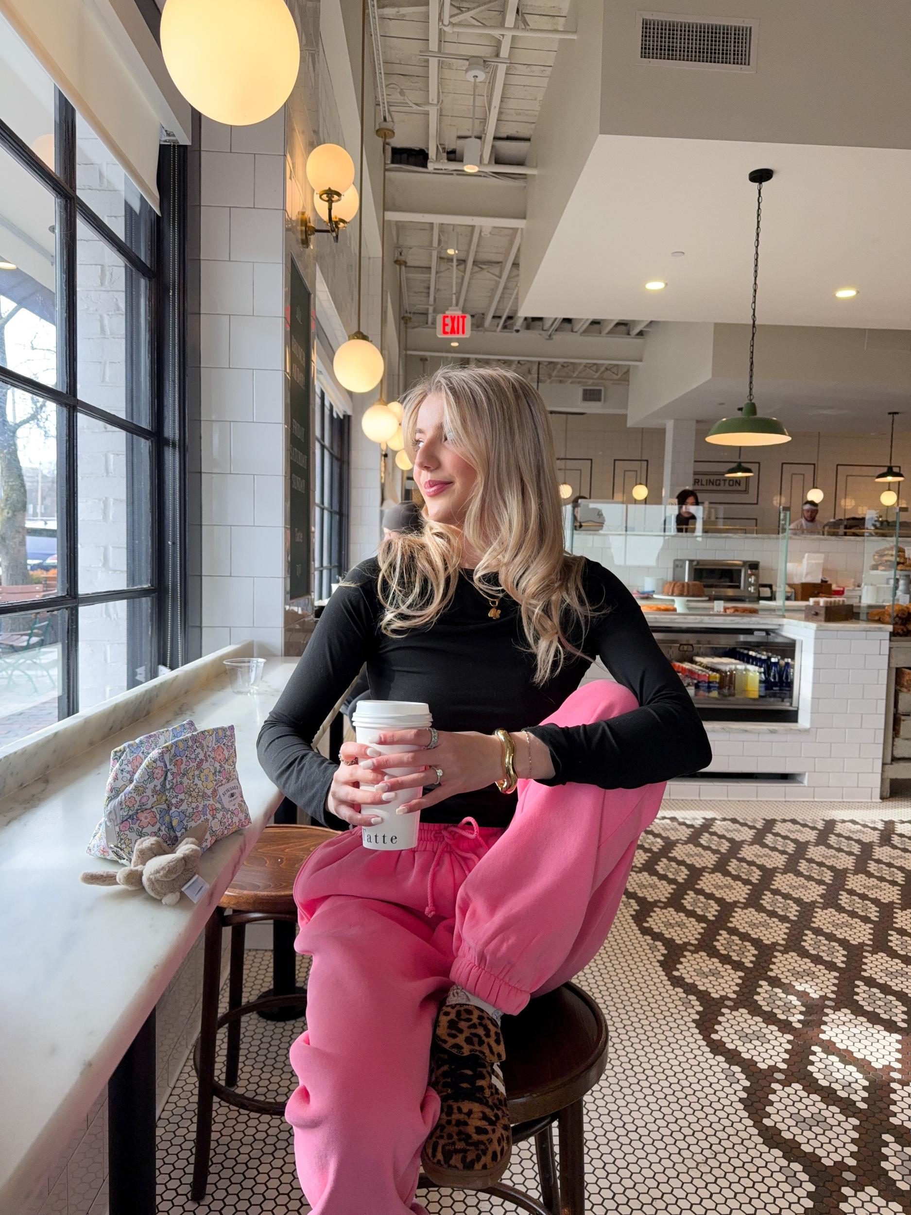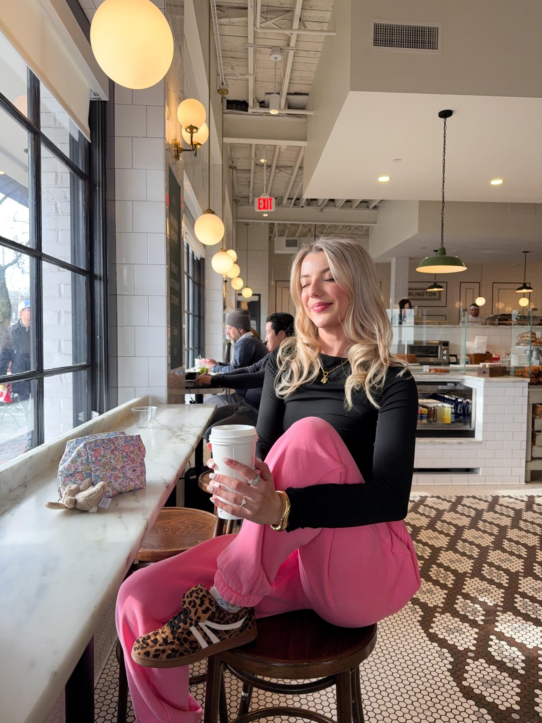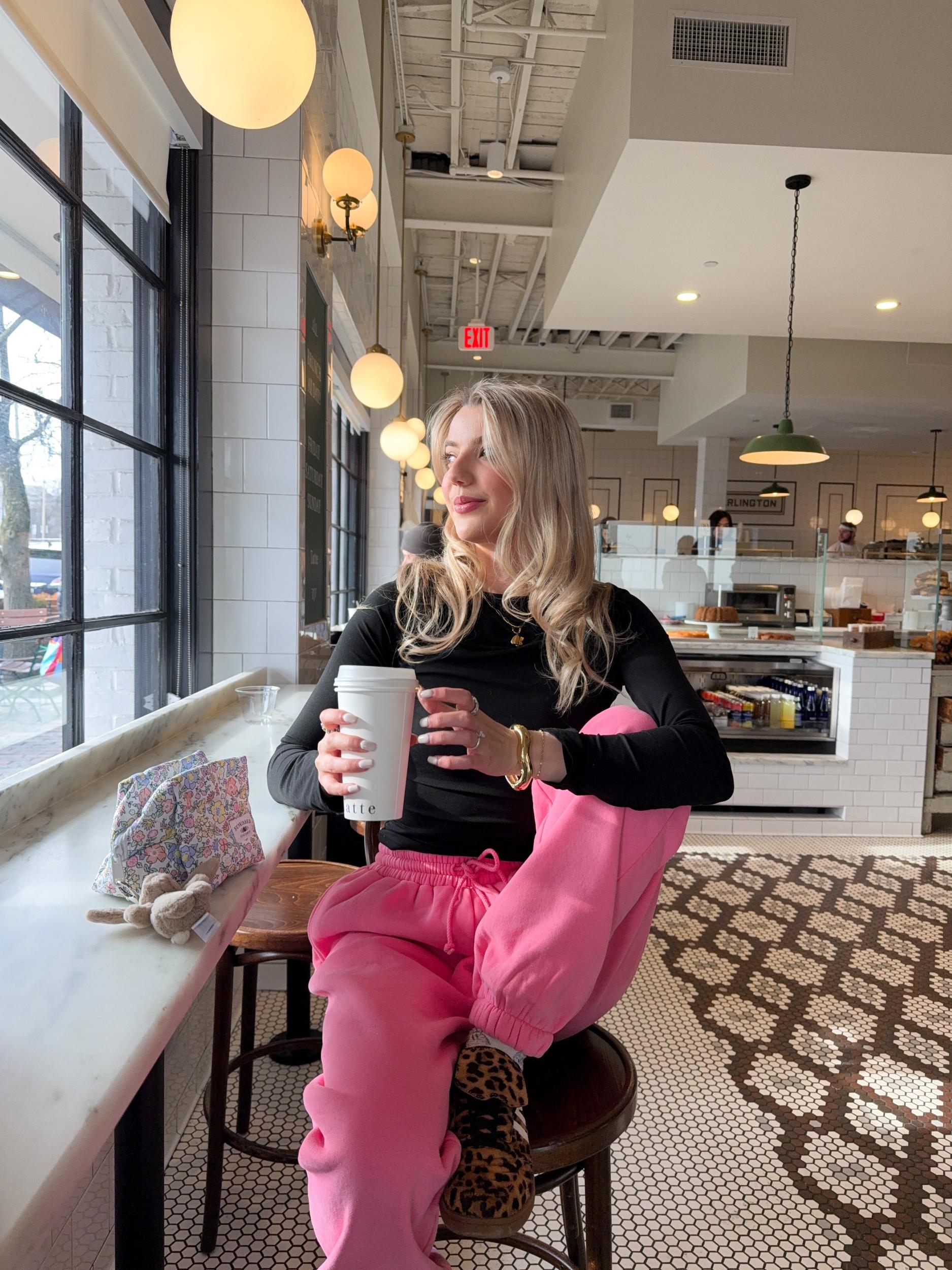 Bottoms: model is wearing a size Large