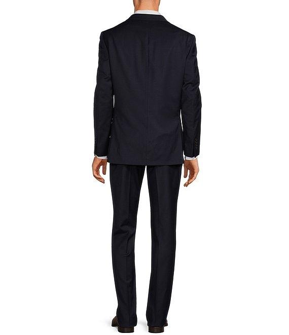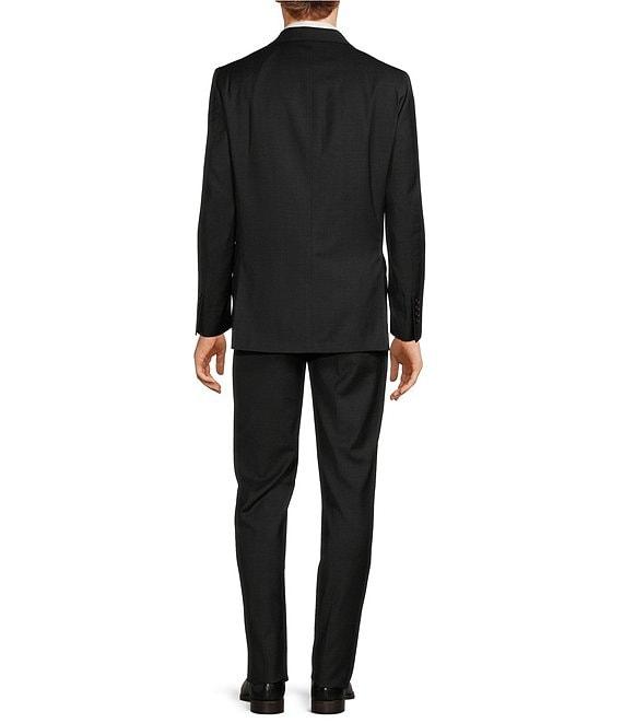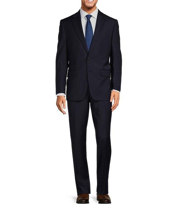 From Hickey Freeman, this 2-piece suit features: Jacket: Classic fit Solid pattern Notch lapel Long sleeves 2-button Side vent Besoms flap 3 interior utility pockets Bluff edge Pants: Flat front Button closure with zip fly 2 front hand pockets 2 back buttoned pockets Unhemmed styling Care: Wool/spandex Dry clean Imported. *Dillard's offers free alterations at our retail store locations on full-price tailored garments. Suits have what is called a "drop", which is the difference between the size of the jacket and the size of the pants. Classic-fit suits typically have a 6" drop, meaning that a size 38R jacket is paired with size 32 pants. Trim-fit suits typically have a 7" drop; extra-trim-fit suits usually have an 8" drop.