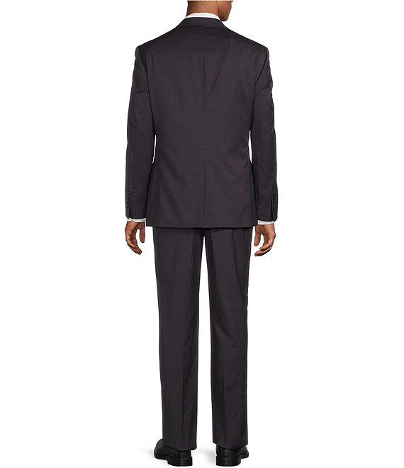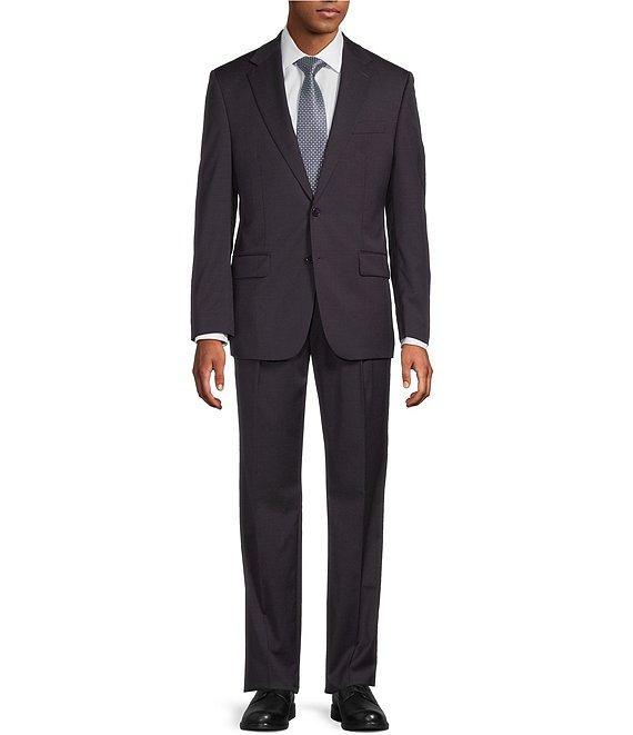From Hickey Freeman, this 2-piece suit features: Jacket: Classic fit Notch lapel Long sleeves Mini check pattern Besom/flap pockets Center vent 2-button front closure Wool/spandex Dry clean Pant: Pleated Mini check pattern Wool/spandex Dry clean Imported.
