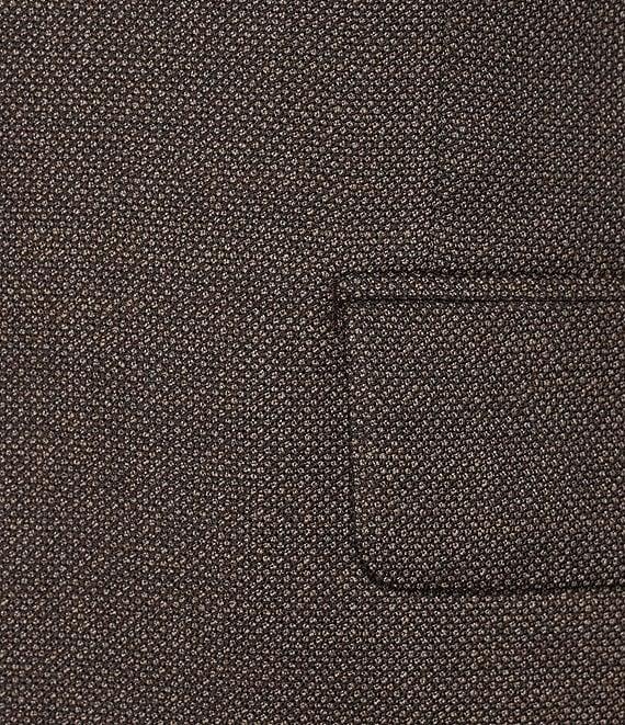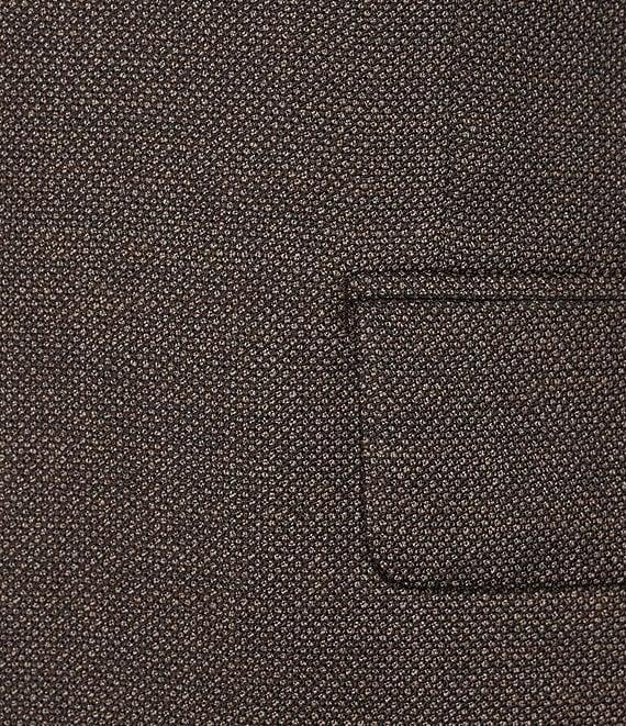From Hickey Freeman, this 2-piece suit features: Jacket: Modern fit Notch lapel Long sleeves Pattern Besom/flap pockets Side vent 2-button front closure Wool/spandex Dry clean Pant: Flat front Pattern Wool/spandex Dry clean Imported.