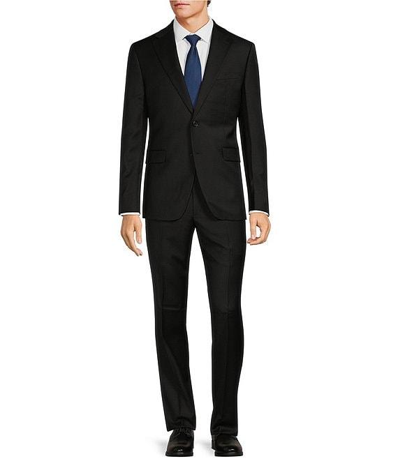 From Hickey Freeman, this 2-piece suit features: Jacket: Modern fit Solid pattern Notch lapel Long sleeves 2-button Side vent Besoms flap 3 interior utility pockets Bluff edge Pants: Flat front Button closure with zip fly 2 front hand pockets 2 back buttoned pockets Unhemmed styling Care: Wool/spandex Dry clean Imported. *Dillard's offers free alterations at our retail store locations on full price tailored garments. Suits have what is called a "drop", which is the difference between the size of the jacket and the size of the pants. Classic-fit suits typically have a 6" drop, meaning that a size 38R jacket is paired with size 32 pants. Trim-fit suits typically have a 7" drop; extra-trim-fit suits usually have an 8" drop.