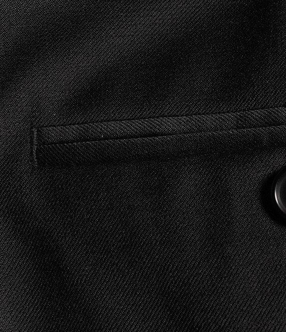From Hickey Freeman, this 2-piece suit features: Jacket: Modern fit Solid pattern Notch lapel Black grosgrain lapel Long sleeves 2-button Black grosgrain covered button Side vent Besoms flap 3 interior utility pockets Bluff edge Pants: Flat front Button closure with zip fly 2 front hand pockets 2 back buttoned pockets Unhemmed styling Care: Wool/spandex Dry clean Imported. *Dillard's offers free alterations at our retail store locations on full price tailored garments. Suits have what is called a "drop", which is the difference between the size of the jacket and the size of the pants. Classic-fit suits typically have a 6" drop, meaning that a size 38R jacket is paired with size 32 pants. Trim-fit suits typically have a 7" drop; extra trim fit suits usually have an 8" drop.