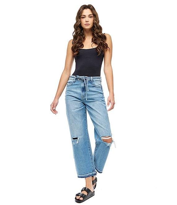 From Hidden Jeans, these jeans feature: Distressed detail High rise Belt loops Zip/button-front closure Strap belt 5-pocket styling 31" inseam Straight legs Classic fit Cotton denim Machine wash/tumble dry Imported.