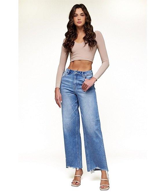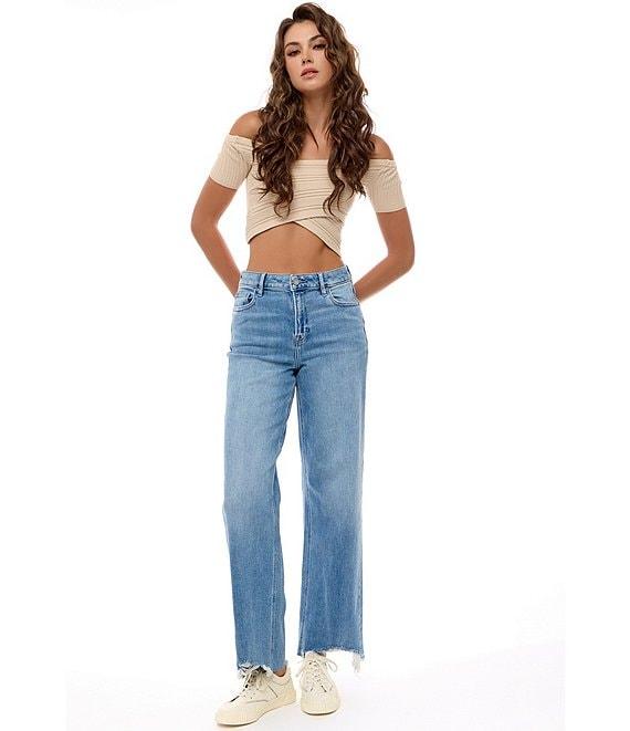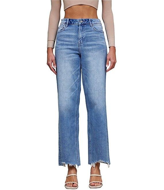 From Hidden Jeans, these jeans feature: High rise 11" Belt loop Button/zip closure 5-pockets Light stretch Medium wash Frayed hem Approx. 31" inseam Cotton/polyester/spandex Machine wash/tumble dry Imported