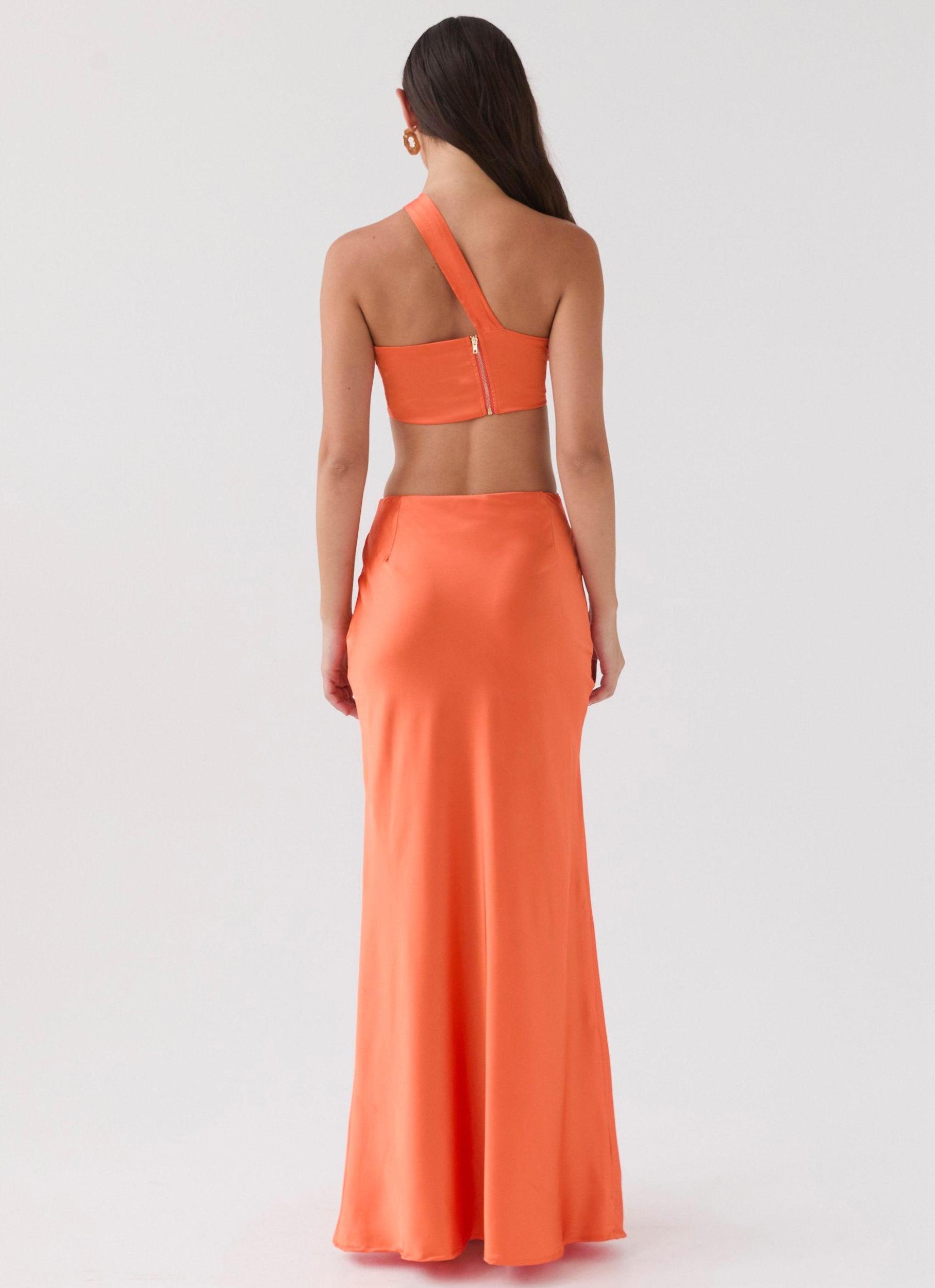Peppermayo Exclusive Elevate your wardrobe with our Hidden Oasis Satin Maxi Skirt. This skirt offers a mesmerising silhouette in luxurious satin fabric. Pair it effortlessly with the Hidden Oasis Satin Top for a coordinated look that embodies style from sunset to sundown. - Maxi skirt- Elastic waistband- Lined- Mid rise fit- Wide hem- 96% Polyester, 4% Elastane Size AU 8 garment measurements:Length 105cmHip 92cmWaist 68cm Olivia wears size AU 6 / size US 2
