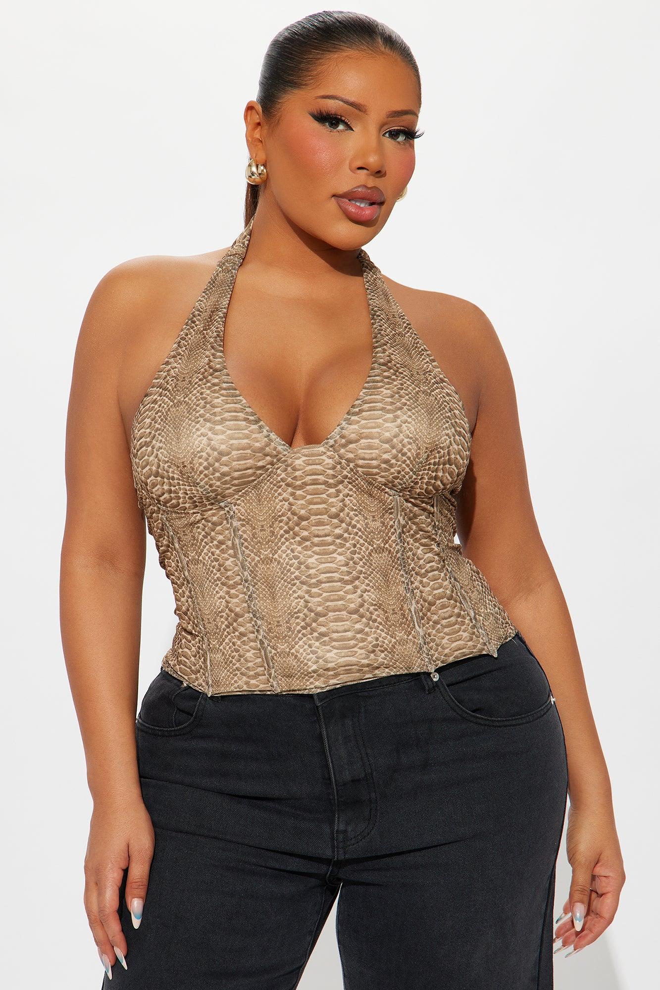 Hidden Oasis Snake Print Corset Top - Brown/combo