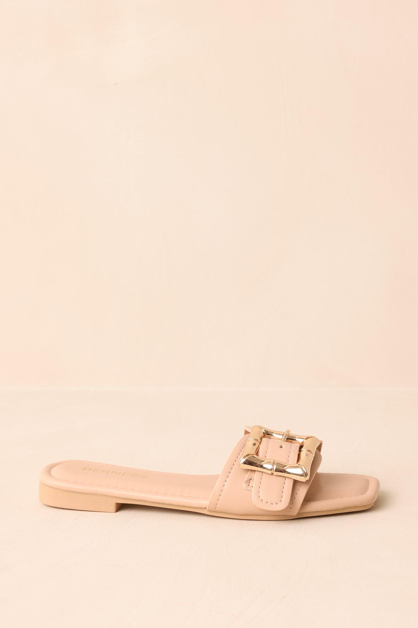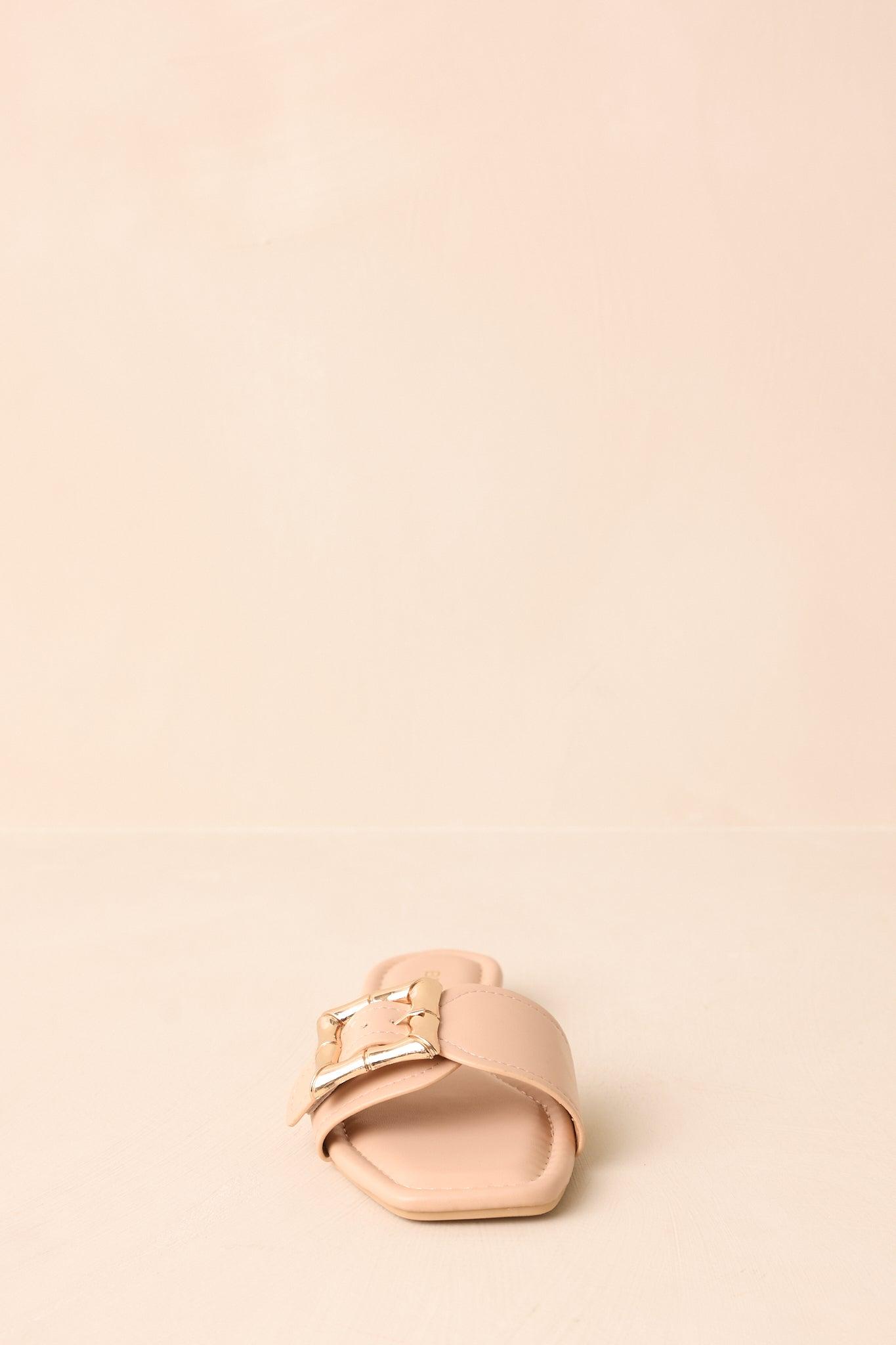 Step into effortless style with the Hidden Treasure Beige Buckle Flat Sandals. Their neutral beige tone pairs perfectly with any outfit, while the adjustable buckle ensures a comfortable, secure fit all day long. Designed for both casual outings and relaxed weekends, these flats offer a blend of simplicity and elegance that elevates your look without sacrificing comfort. Make every step a statement with these versatile sandals. These beige sandals feature a faux leather material, a gold buckle detail, and a slip-on design.