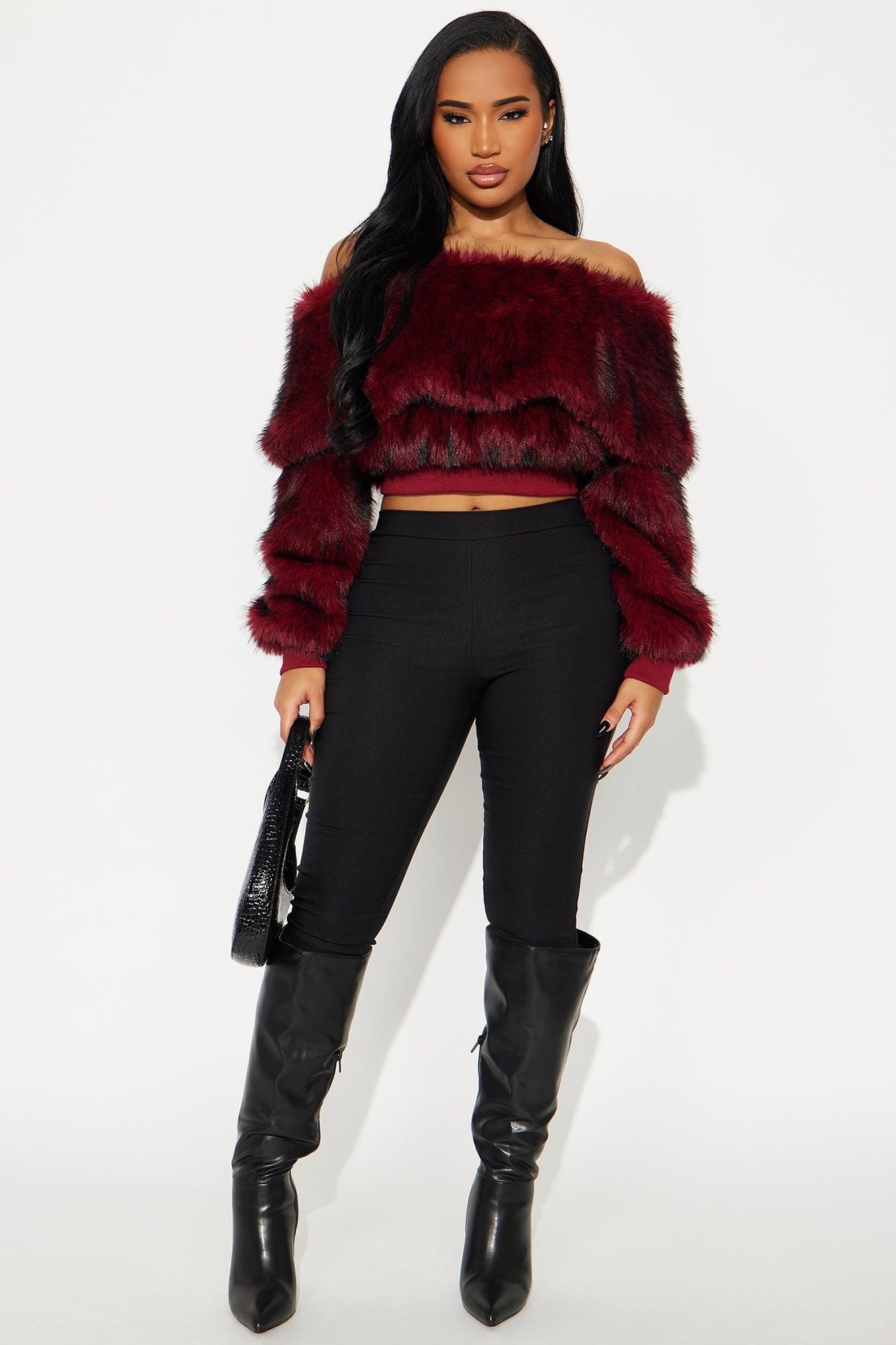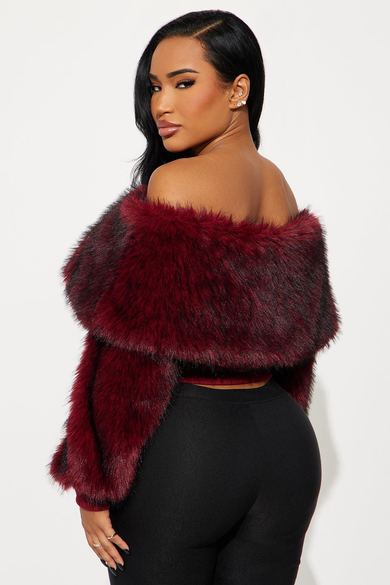 High Class Energy Faux Fur Off Shoulder Sweater - Burgundy Female