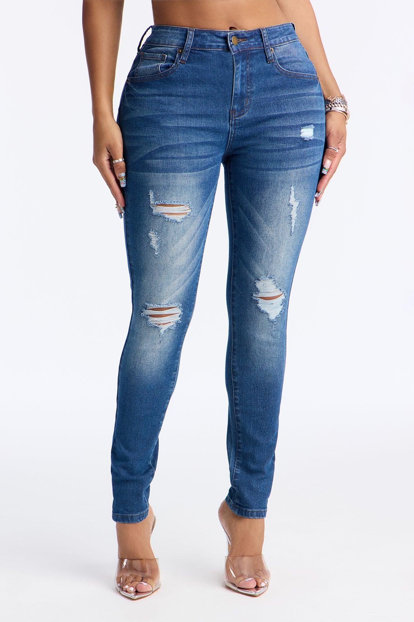 Vivacious Ripped High Rise Skinny Jeans - Medium Wash Female