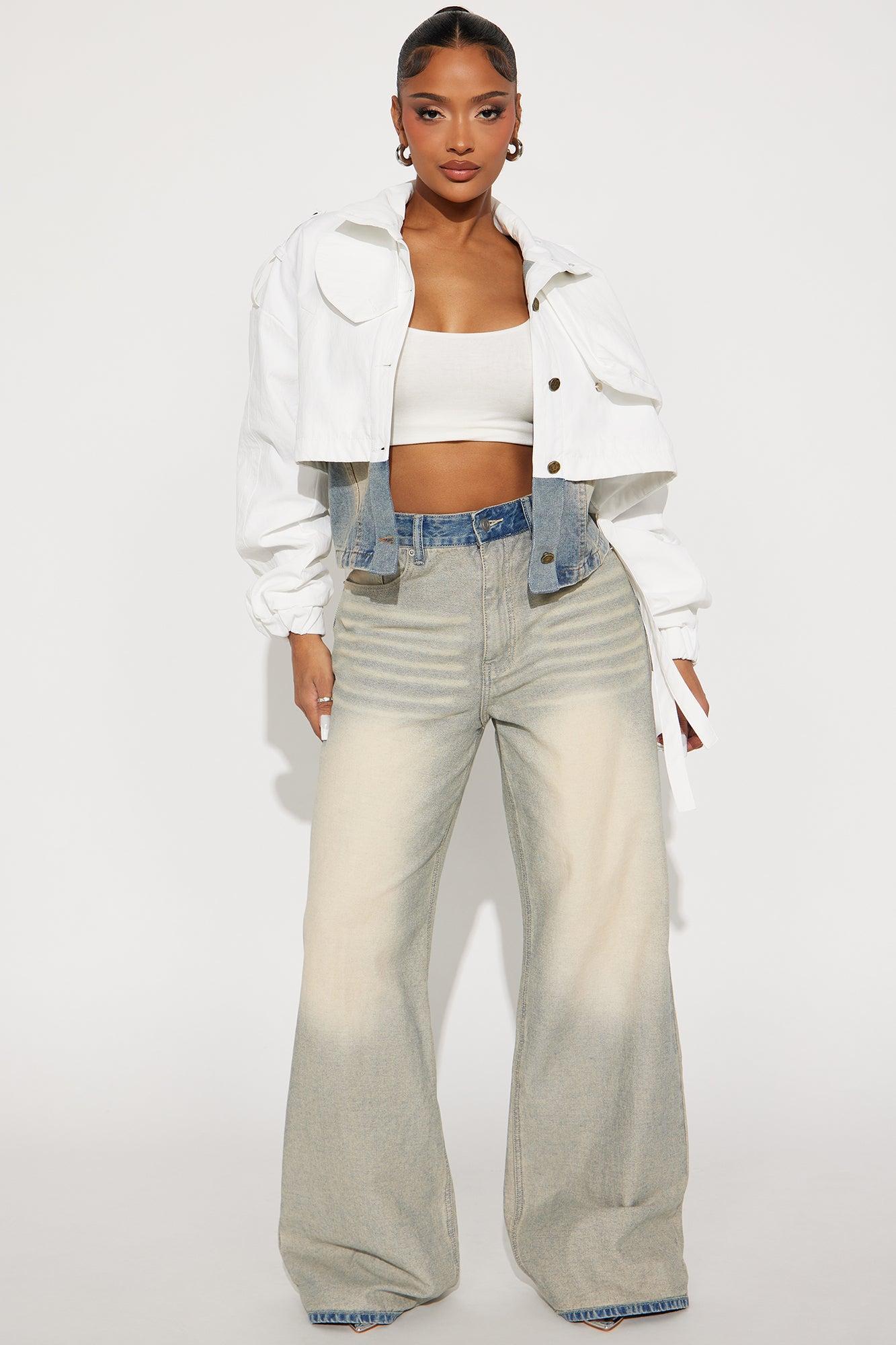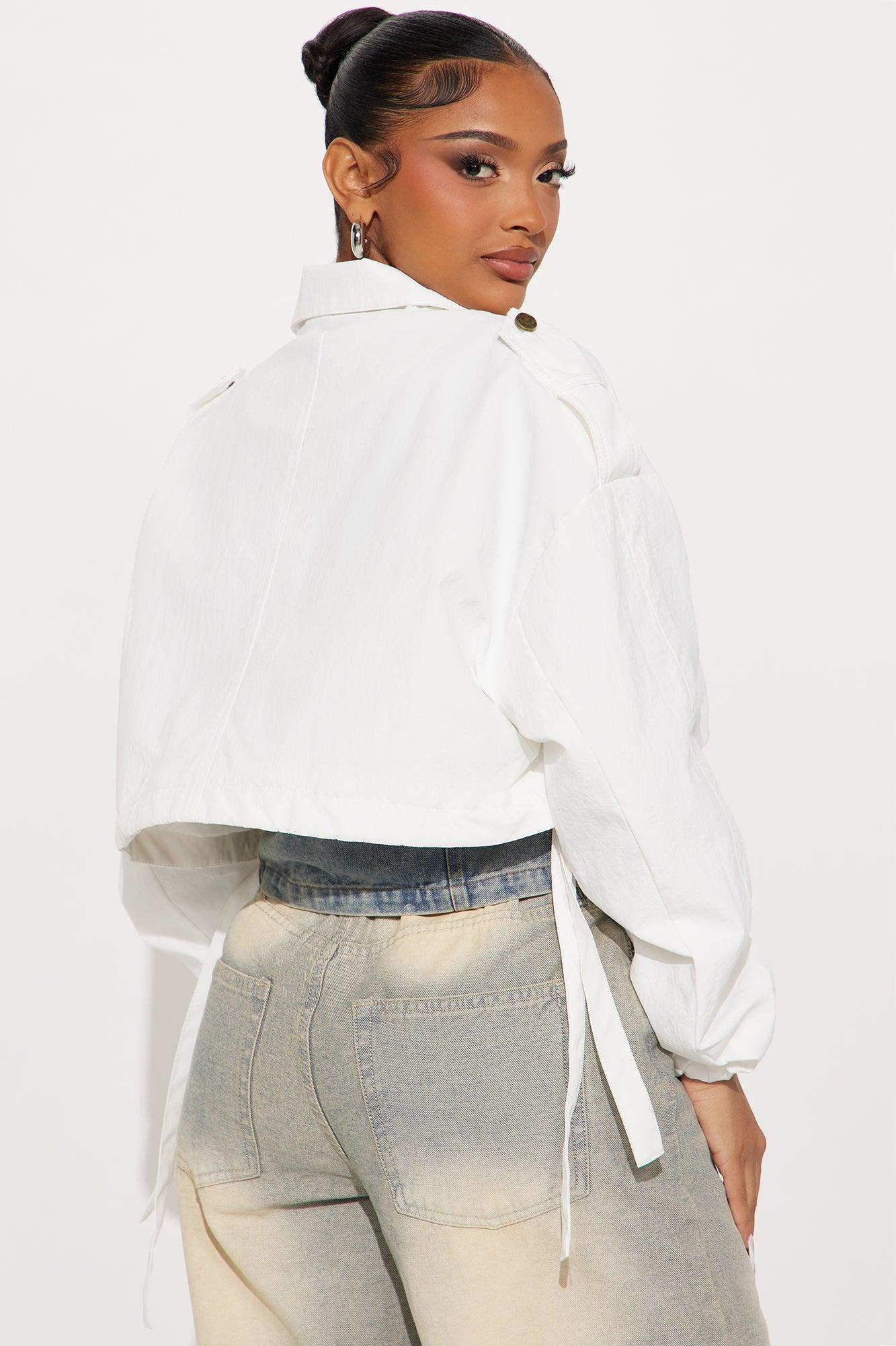 Available In Olive And White. Trench Lapel Collar Long Sleeve Denim Corset Stripe Cropped Fully Lined Disclaimer: Due To The Specialized Wash Process, Each Garment Is Unique. Self: 100% Polyester Contrast: 90% Cotton 10% Polyester Imported