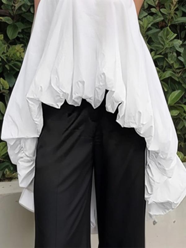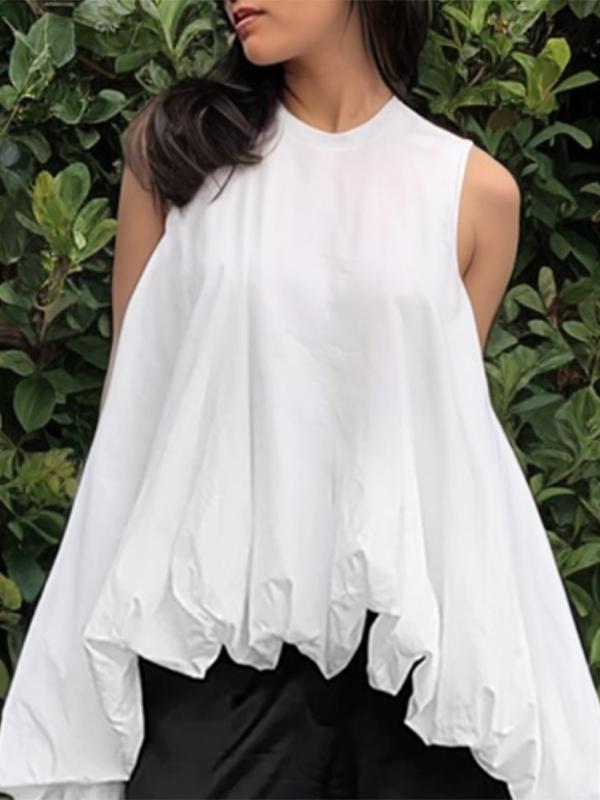 High-Low Loose Pleated Round-Neck Vest Top