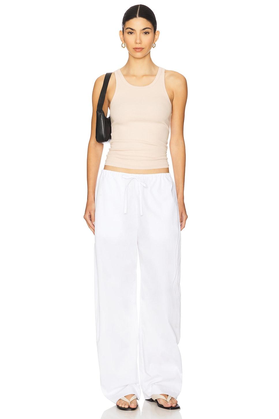 48% cotton, 48% modal, 4% spandex. Machine wash. Lightweight ribbed jersey fabric. Made in US. Revolve Style No. ETEF-WS144. Manufacturer Style No. CB076.