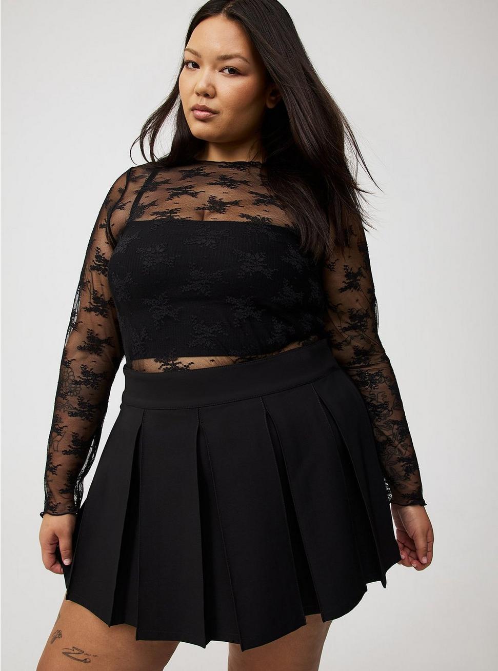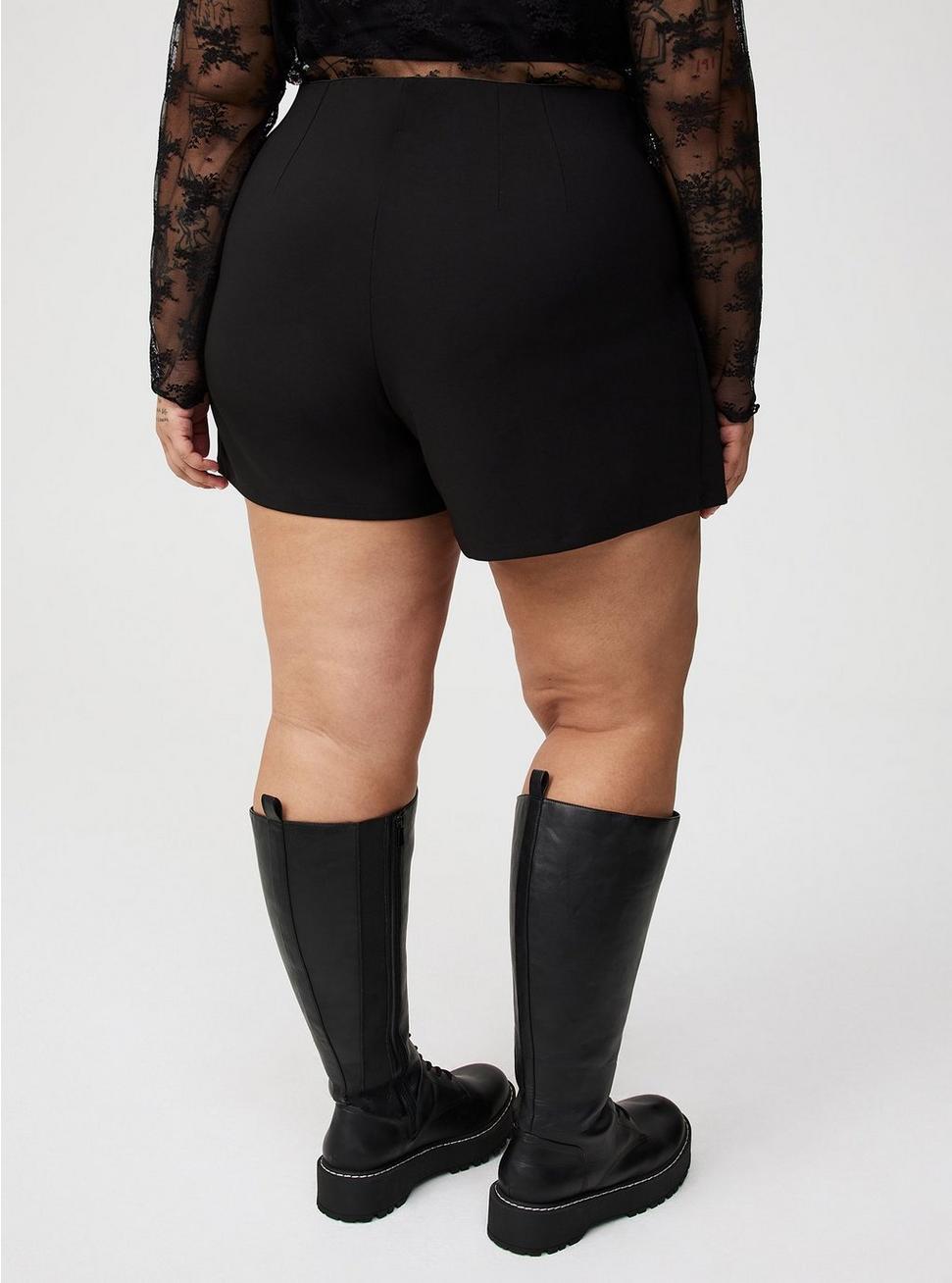 FITSkort silhouette.5'' inseam.MATERIALS + CAREDouble pucker gauze woven fabric. 92% cotton, 8% polyester.Machine wash cold. Tumble dry low.Imported.DETAILS Encased elastic waistband.Cross-over front skirt.Box pleat details.Adjustable snap closures.