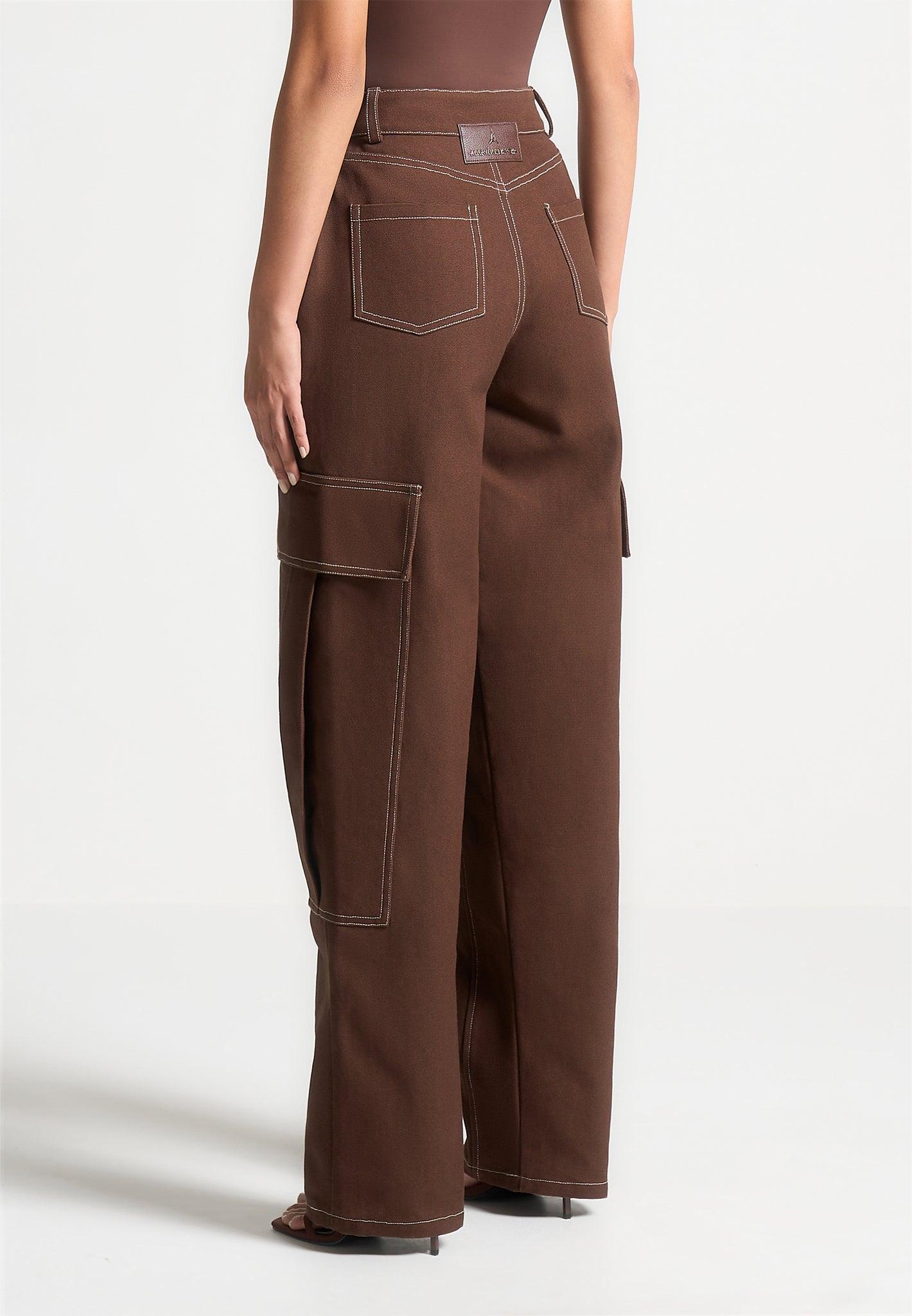 Kingsley Washed Brown Vegan Leather Straight Leg Pants