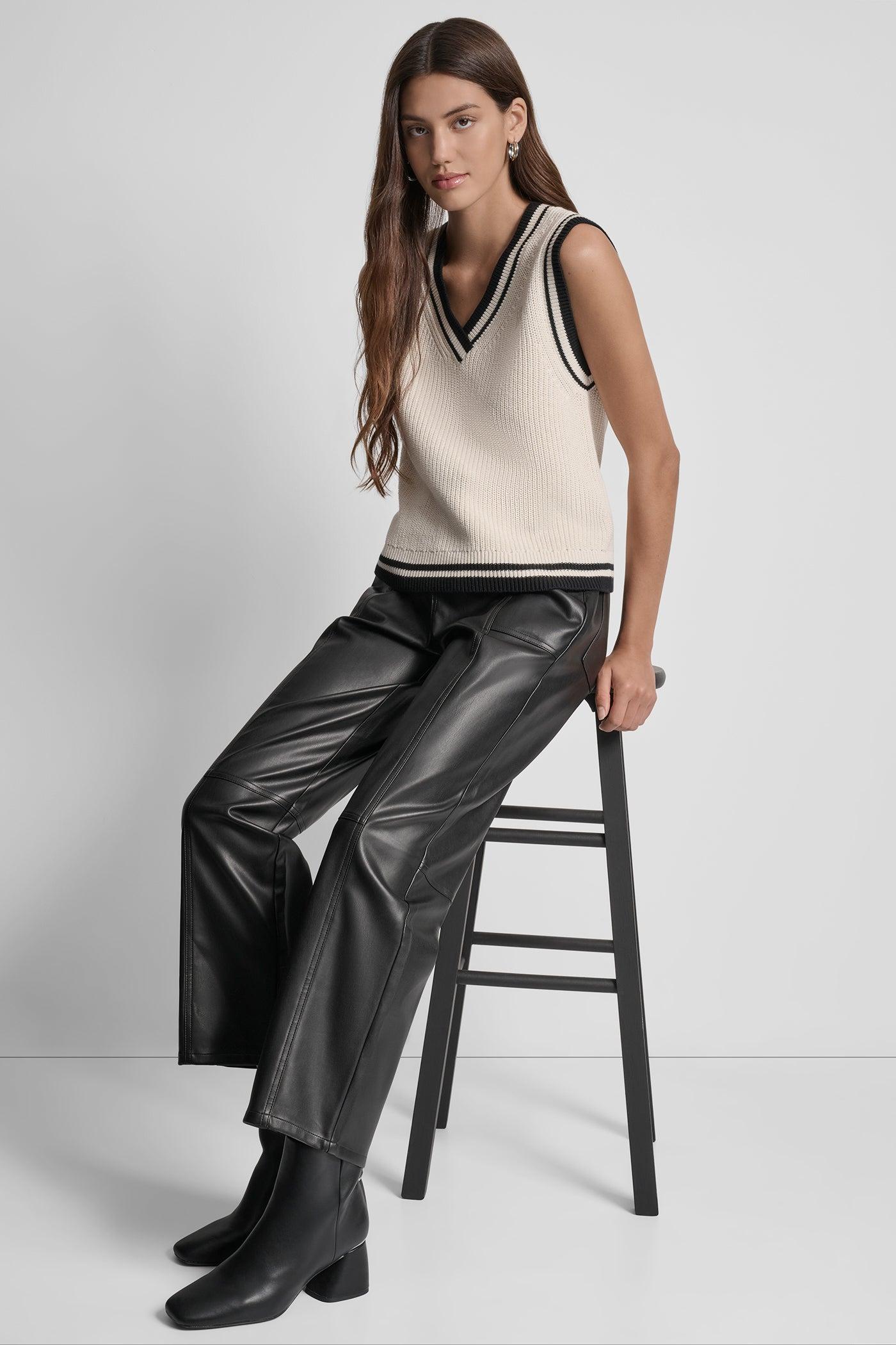 HIGH-RISE FAUX LEATHER STRAIGHT-LEG PANT