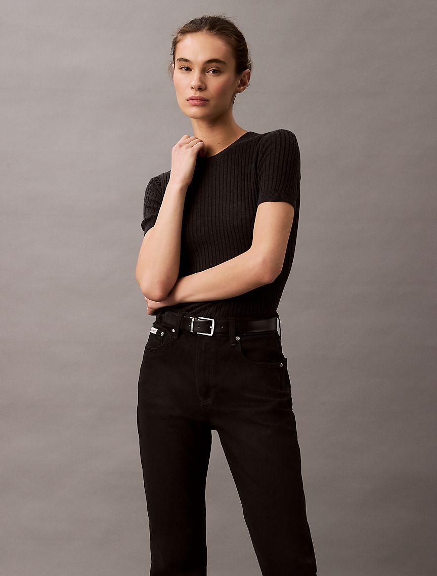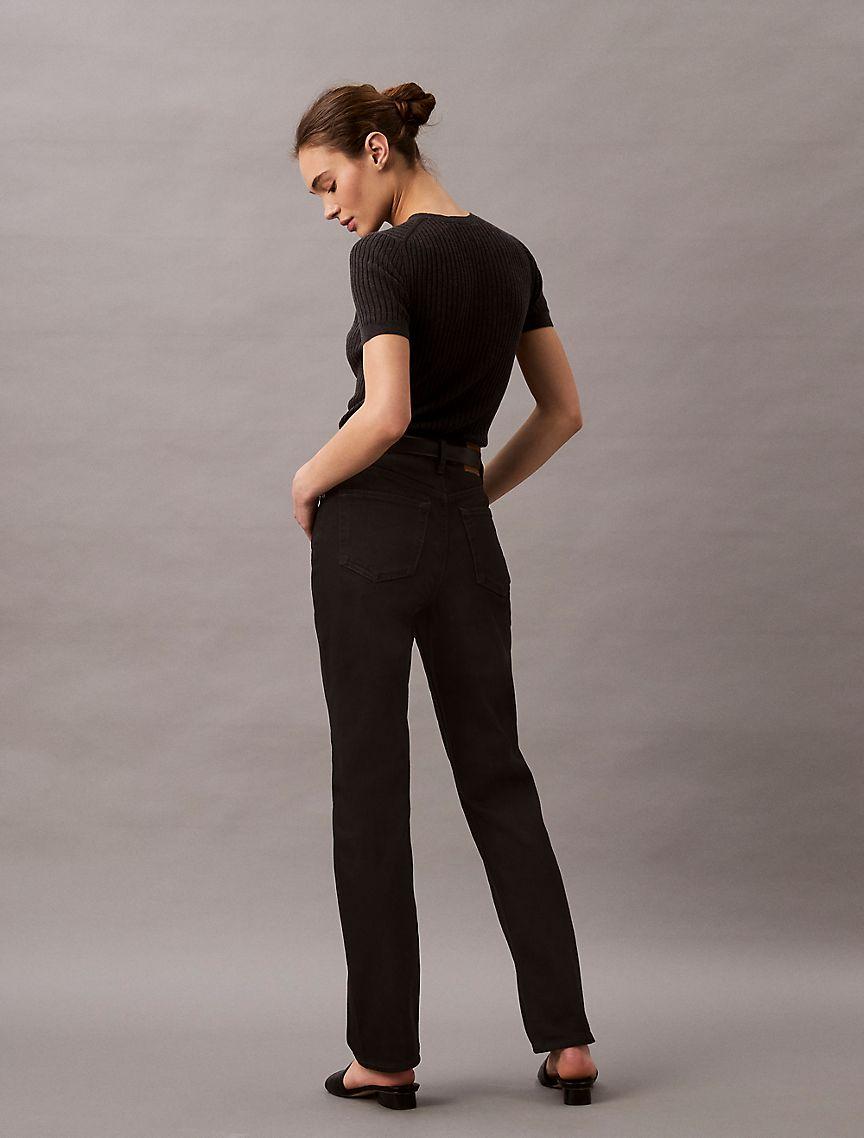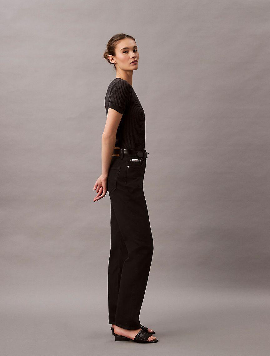A high rise straight leg silhouette, these jeans reimagine '90s styling in an updated fit. Crafted from extra soft cotton stretch denim for a flexible fit and feel. Finished with a CK monogram logo patch at the back waist.