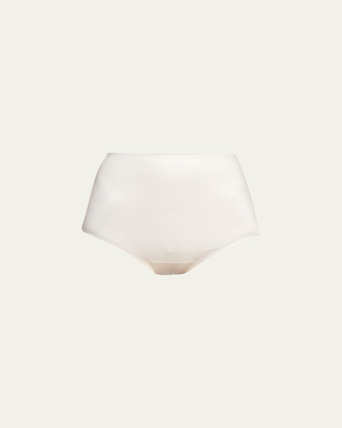 From Spanx, this panty features:Liquid stretch satin fabricSmooths all over, plus double-layer shaping panel targets your core Quick dry fabric Invisible under clothing BriefHigh-waistedCotton gussetNylon/elastaneMachine wash cold gentle cycle/dry flatImported.