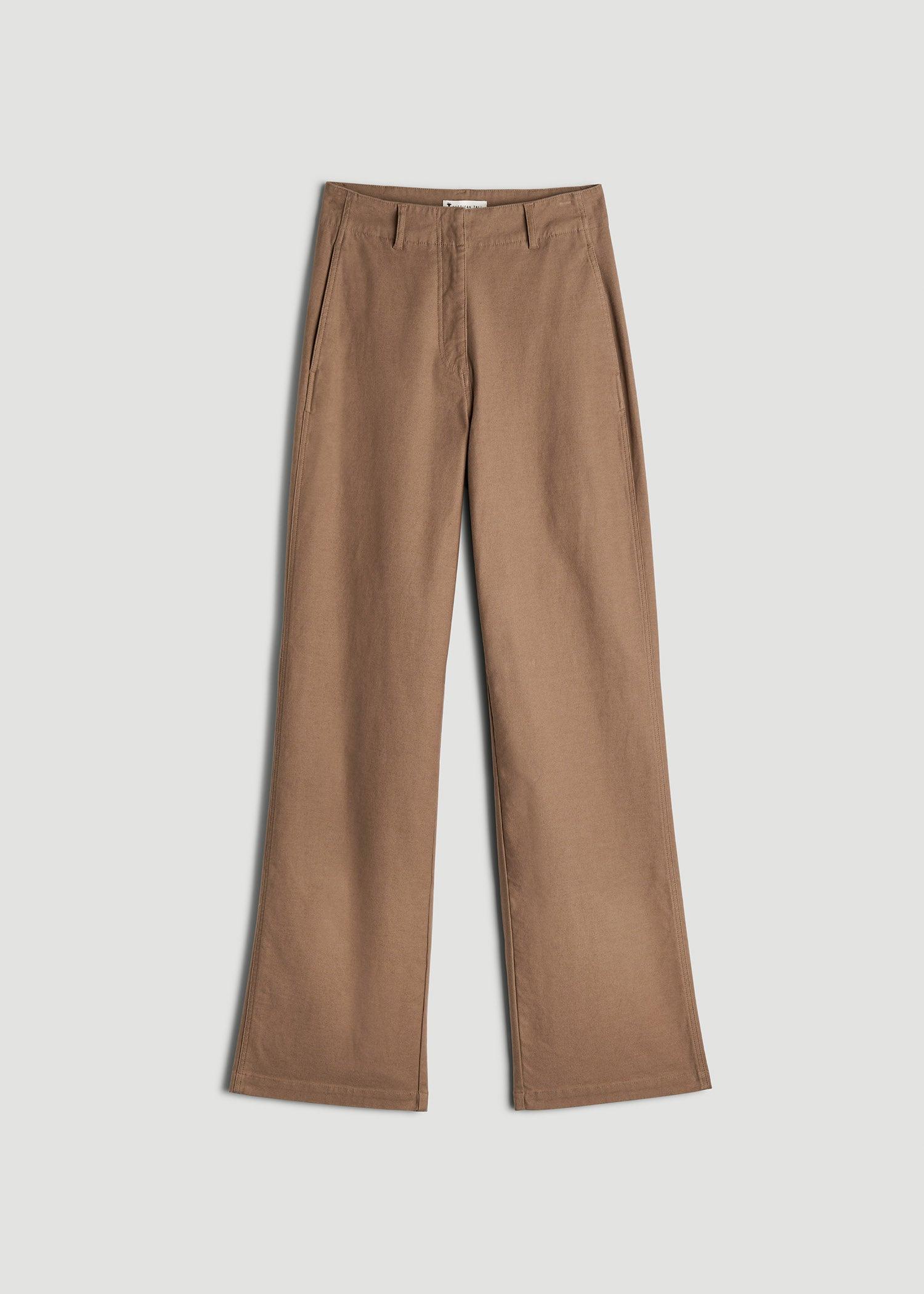 Chino Chic Elevated Everyday Wear for Tall Women Enjoy classic lines made for modern times with our High-Rise Wide-Leg Chino Tall Women's Pants. These pants are a tall girl's dream, combining the classic charm of chinos with a modern wide-leg cut that enhances your silhouette. The high rise keeps you feeling secure and stylish, making these women's tall pants a perfect pick for a professional setting or a polished weekend look.• Wide leg for a contemporary twist on a classic style• High rise for a confident, secure fit• Flat front for a smooth, clean look SIZE & FIT: Tall Inseam: 35" Extra Tall Inseam: 37" High rise to flatter your natural waist Wide-leg design to balance and beautify your tall frame Full length for perfect placement with any shoe Model is 5'11" wearing size 4 Tall FABRIC & CARE: 71% cotton, 27% lyocell, 2% spandex Machine wash cold with like colors Wash inside out Do not bleach Tumble dry low Low heat iron
