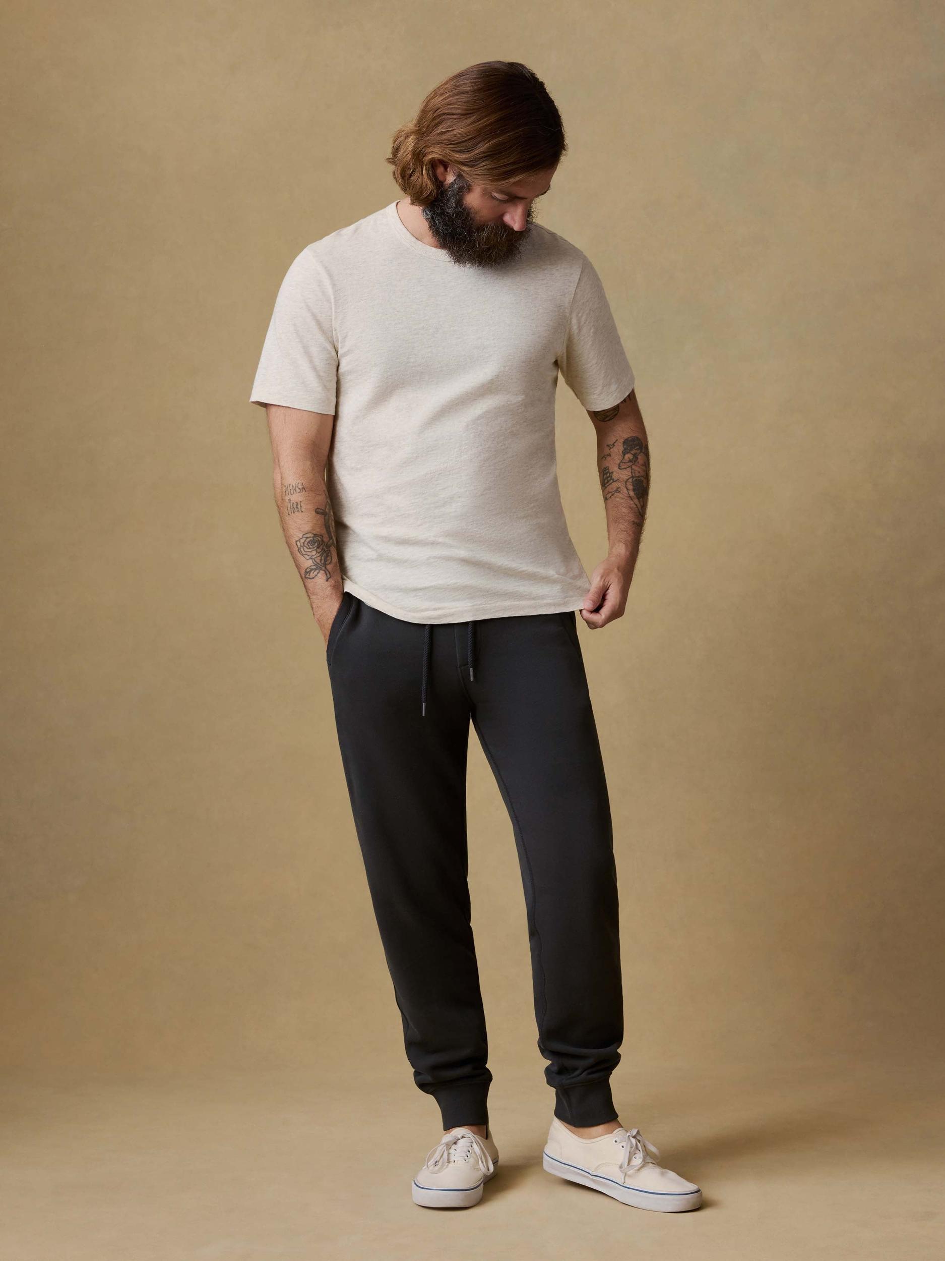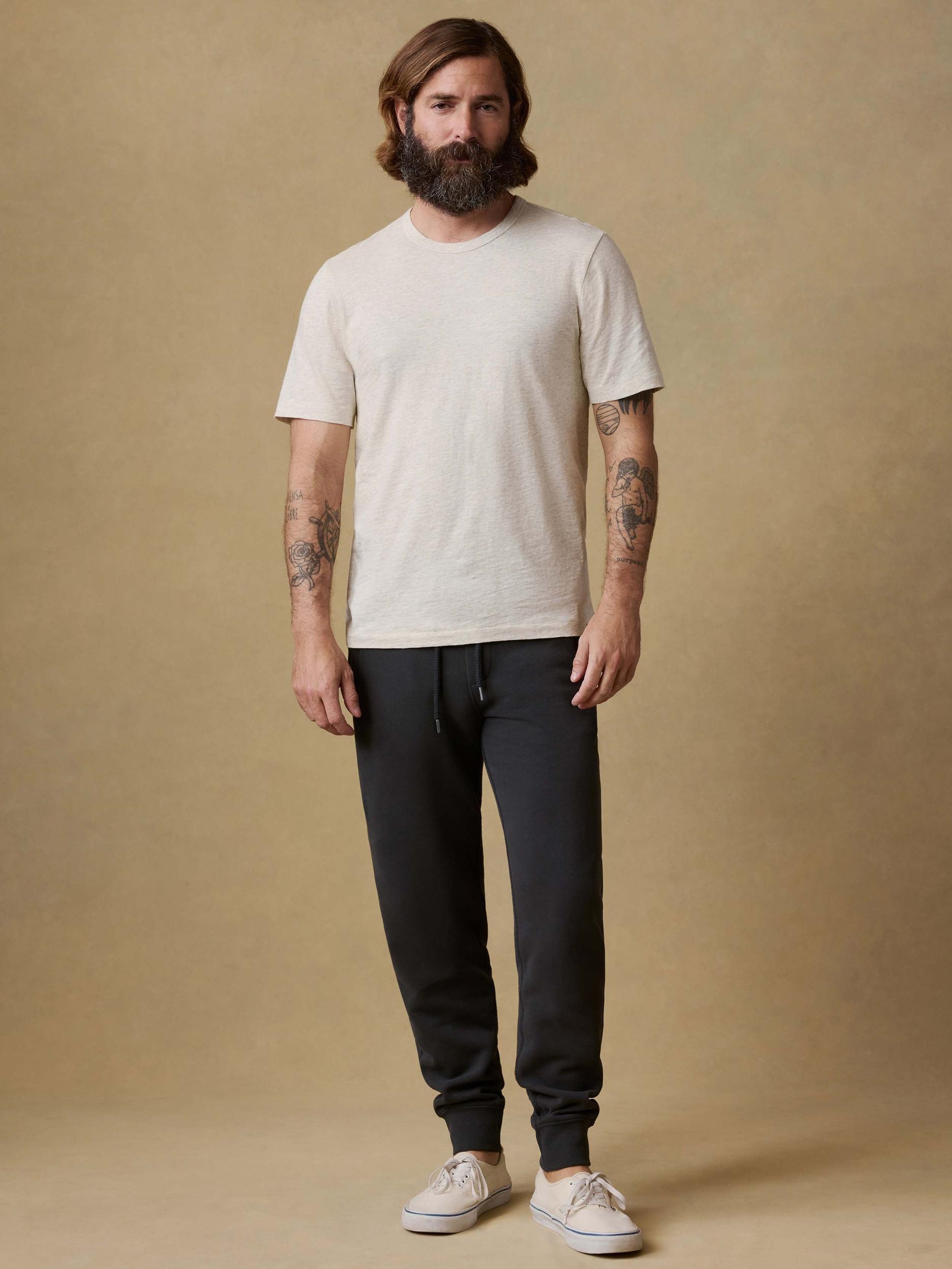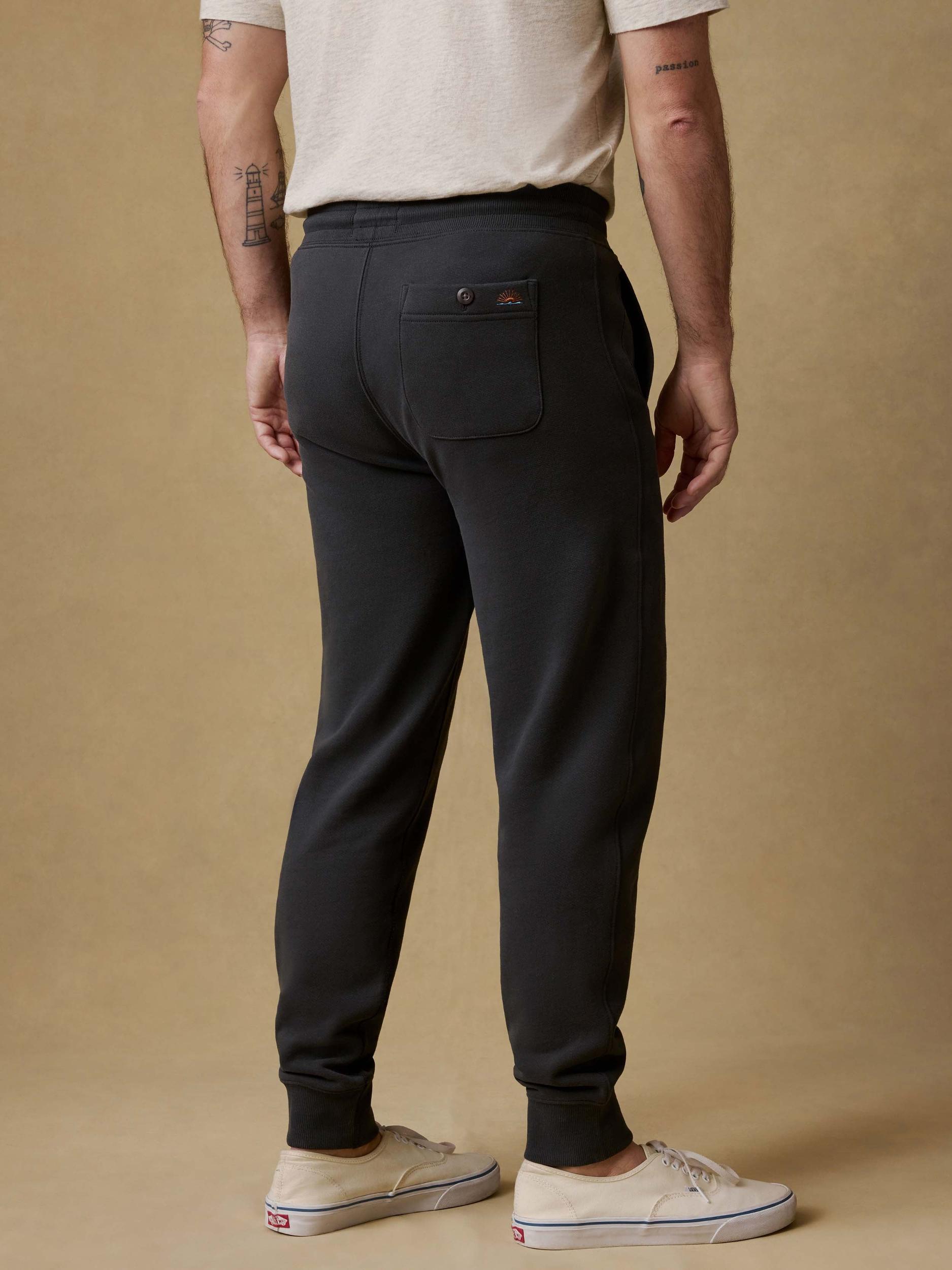 We thought it was about time to move on from our varsity-issued Collegiate Sweats. Comprised of 50% organic pima and 50% organic cotton, these heavyweight knits are the new gold standard that get better and softer with every wear and every wash. With a relaxed fit and an elasticated waist, they nail that effortlessly cool vibe perfect for lounging at home or chilling with friends. Fit: Classic Fit, 27½" Inseam Detail: Rib knit waistband with drawstring. Rib knit cuffs. Front welt pockets. Back patch pocket with button closure at wearer's right side. Sun & Waves label on back pocket. Material: 56% Organic Pima Cotton, 44% Organic Cotton; Elastic Waistband; 4-Hole Faux Corozo Button at Wearer's Right Back Pocket; Cotton Melange Round Drawcord at Waistband with Faherty Logo Metal Waves Tips Model: Taro is 6'1 wearing size Medium Care: Close all zippers before wash. Turn inside out. Machine wash cold with like colors. Delicate cycle. Do not bleach. Tumble dry low. Remove promptly. Warm iron when needed. MBF2427-MBA