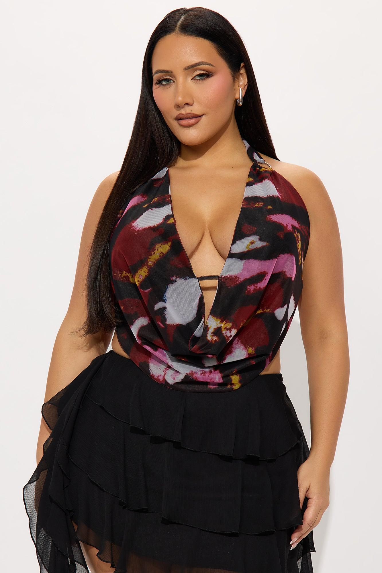 High Steaks Mesh Cowl Neck Halter Top - Black/combo Female