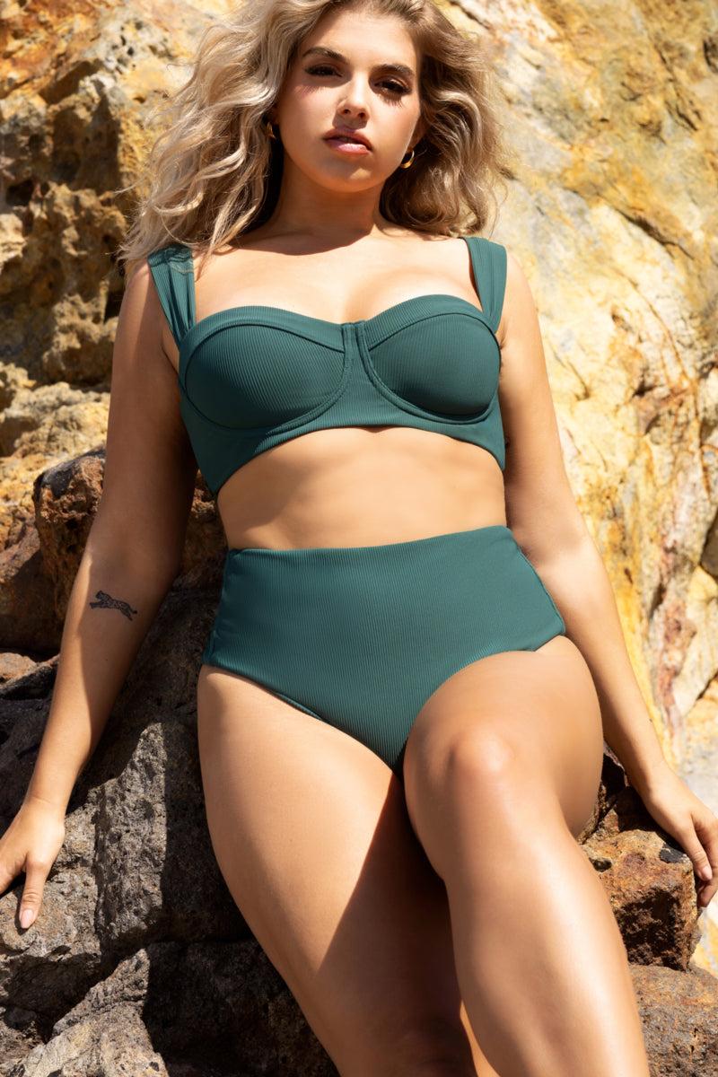 High Tide Cheeky Bikini Bottoms - Green Rib