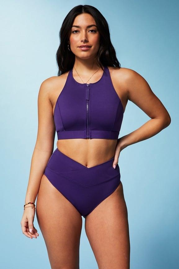 Swim meets sport. With a versatile front zip and sleek racerback, this swim top is fit for paddleboarding or poolside. It's crafted in recycled fabric that's high compression and shaping, ensuring you feel supported all day long.