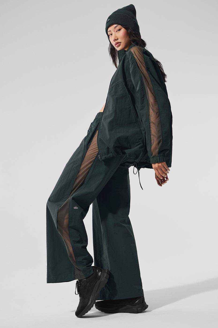 High-Waist Origin Wide Leg Track Pant - Charcoal Green Female Product Image