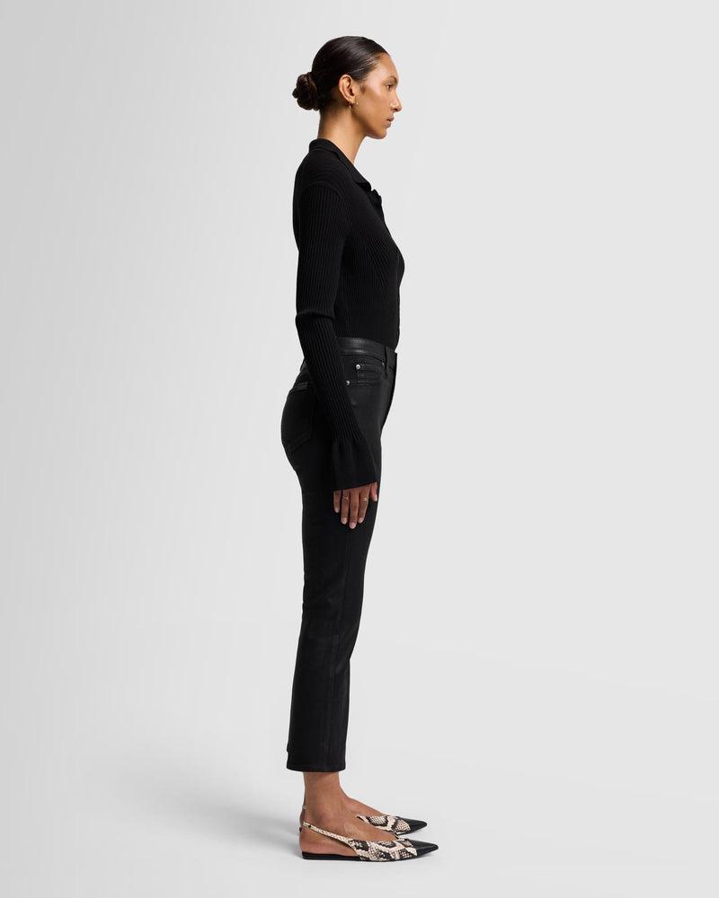 Fit and flare. Coated denim offers the clean look and feel of leather with the stretch and comfort of denim. Add refined edge to any look and pair these with your favorite pair of boots or strappy sandals.